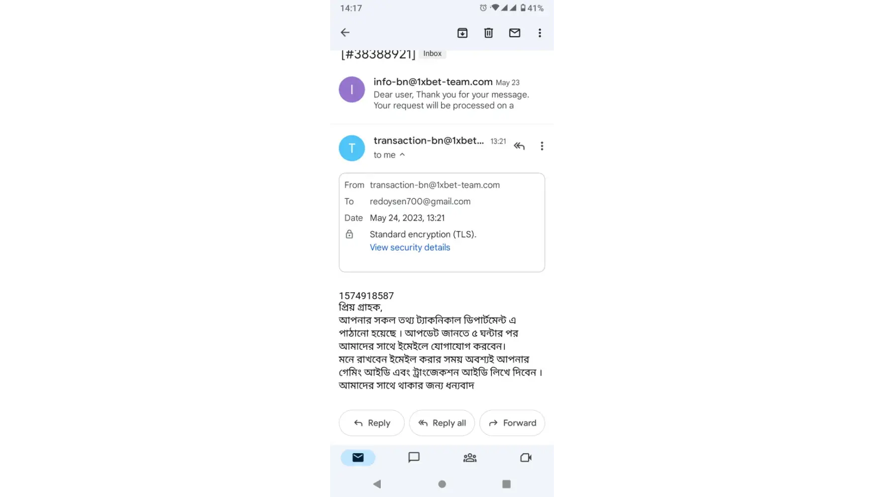 Recently, I deleted my 2-factor authentication on my phone and was unable to log in. I have emailed the correct email address ( [protected]@1xbet-team.com) about this issue along with my driver's license which I used to register with and my most recent deposit screenshot. I also sent my login phone number but I don't know my personal FF ID number because I always log in with my phone number. I still have funds in my account and would like to access it. It has been 3 days since my first email but still have received no reply. Could you kindly help follow up on this issue and help me solve this problem? Thank you very much