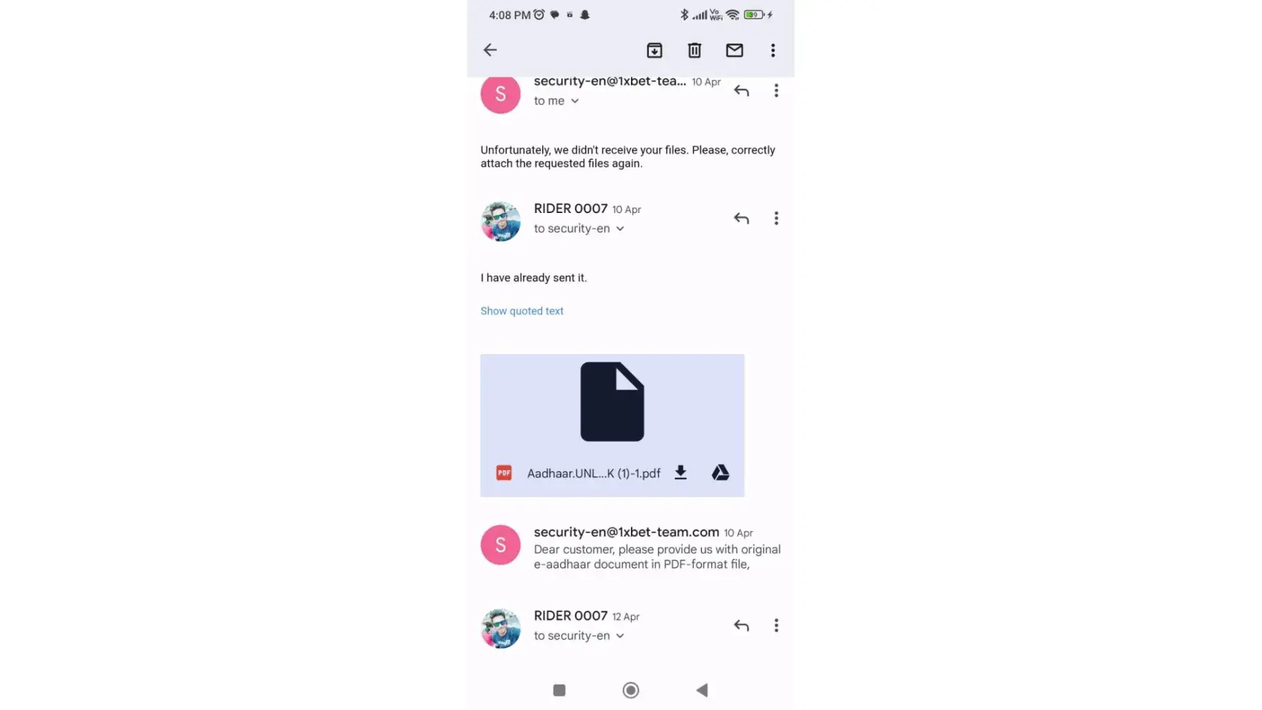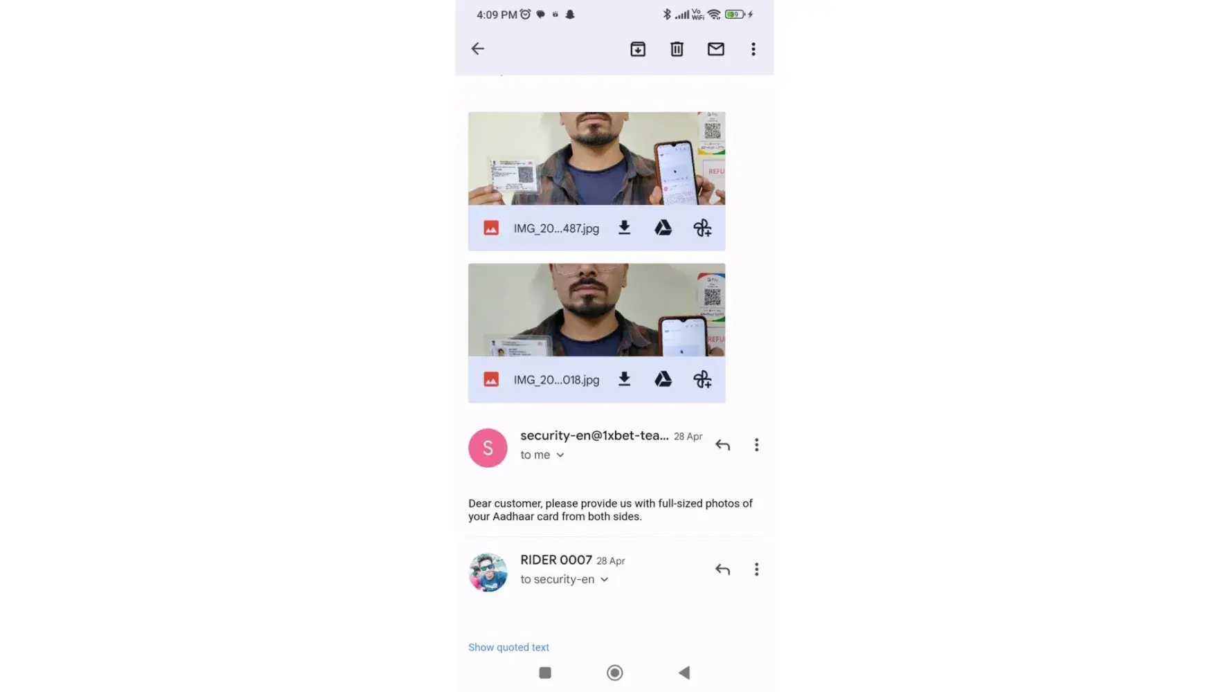 It should be mentioned that all my identity documents have been submitted to the website's security team via email.