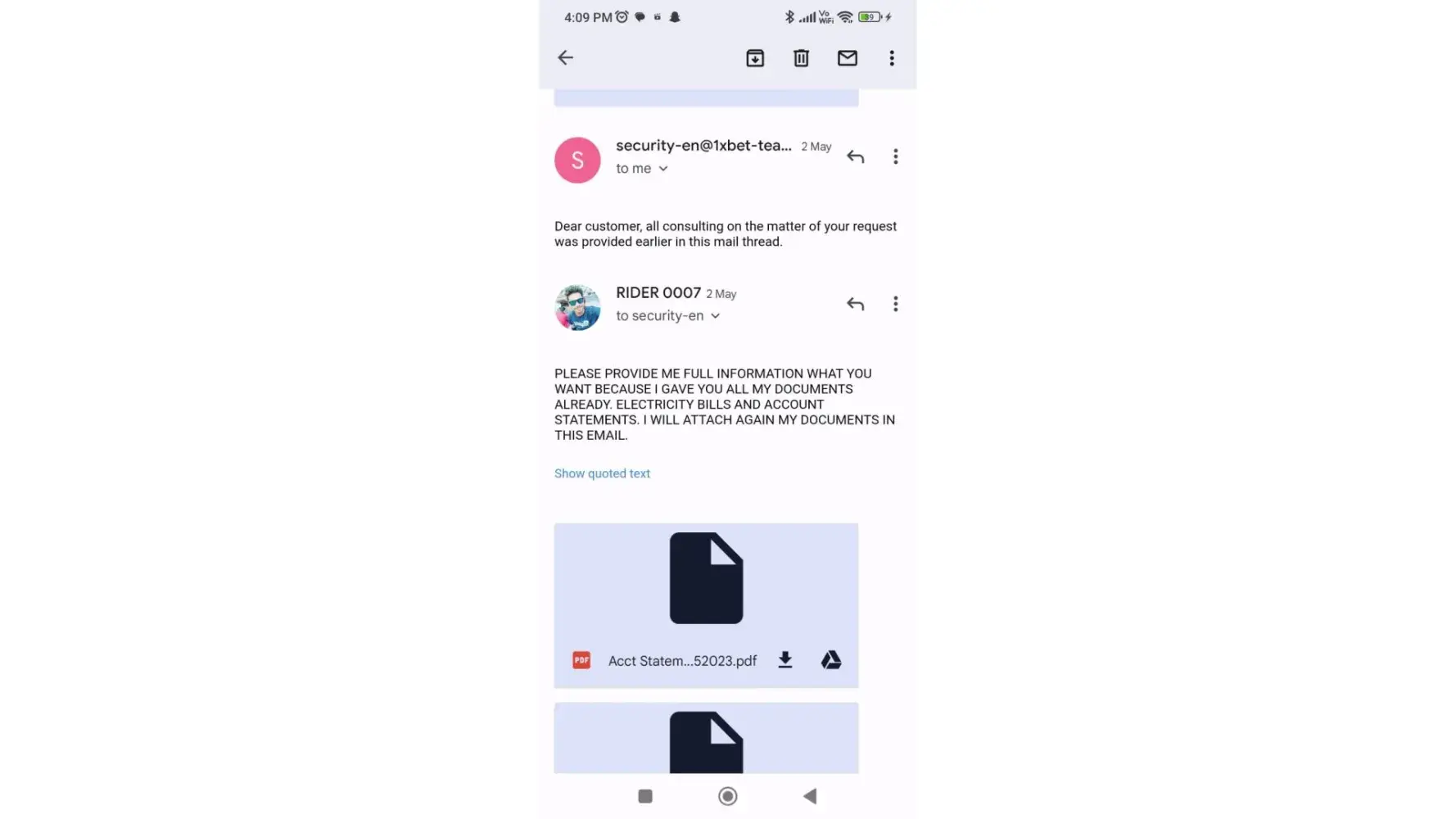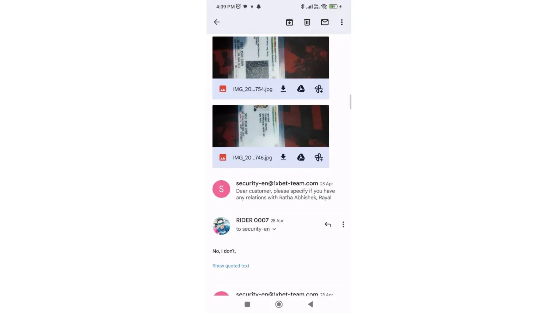 I have attached the full email conversation in photos.