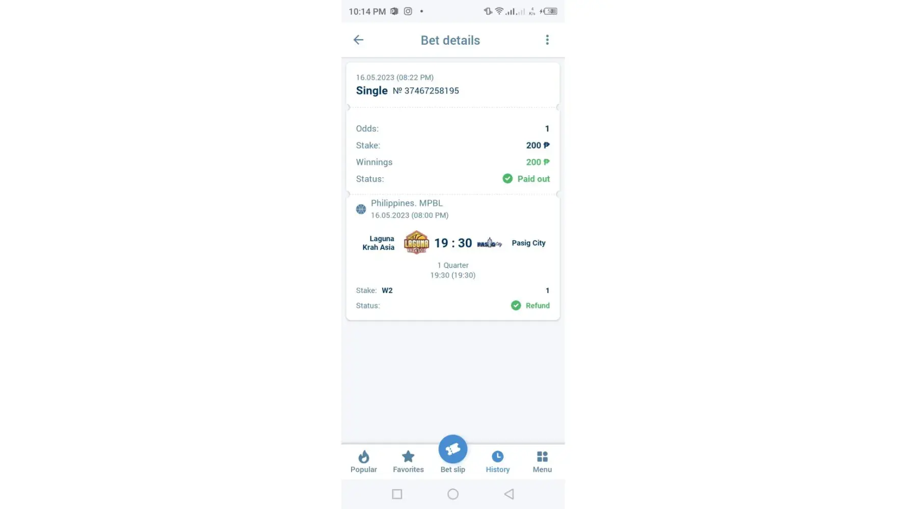 I won one of the basketball match here in the Philippines but instead of giving the price 1xbet Philippines refunded my bet ? I don't know why they refunded my bet but it was clearly won ..I bet pasig(w2) in 1st quarter and they won up by 11 the game is not postponed so why I only received a response amount heres my account no. kindly review it please