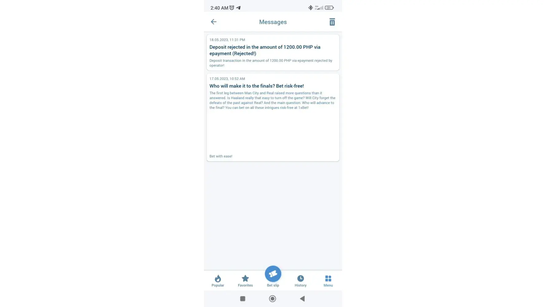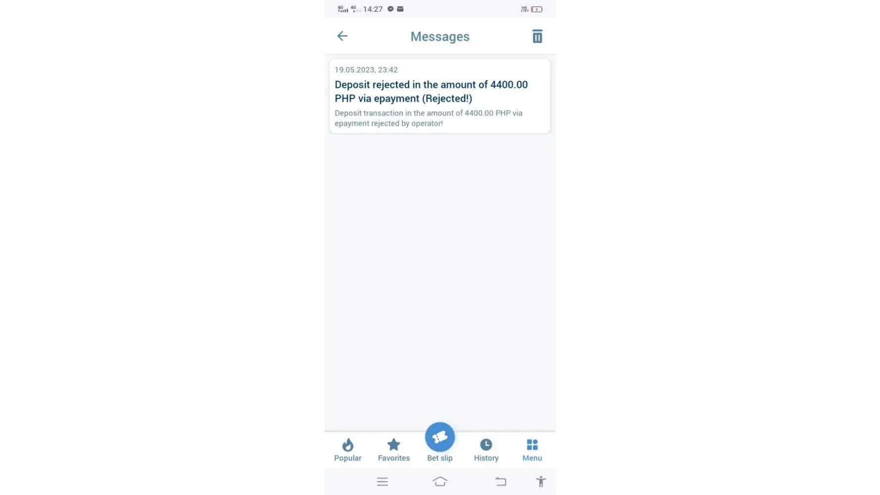 I deposited 5000PHP but it was rejected by the operator of 1xBet yet it was successfully deducted on my bank account.