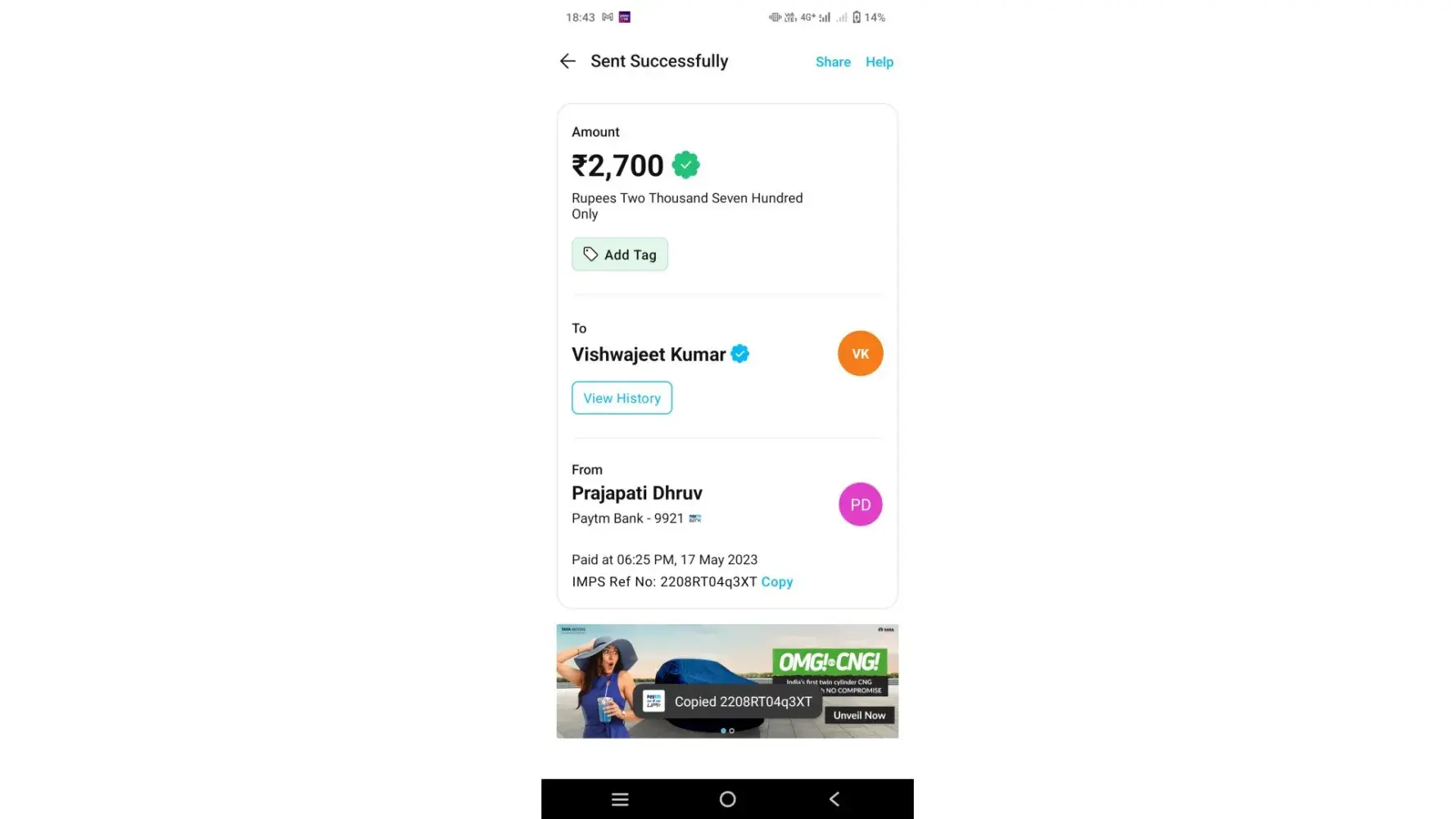 Reciever upi id : VISHWAJEET-957@PAYTM