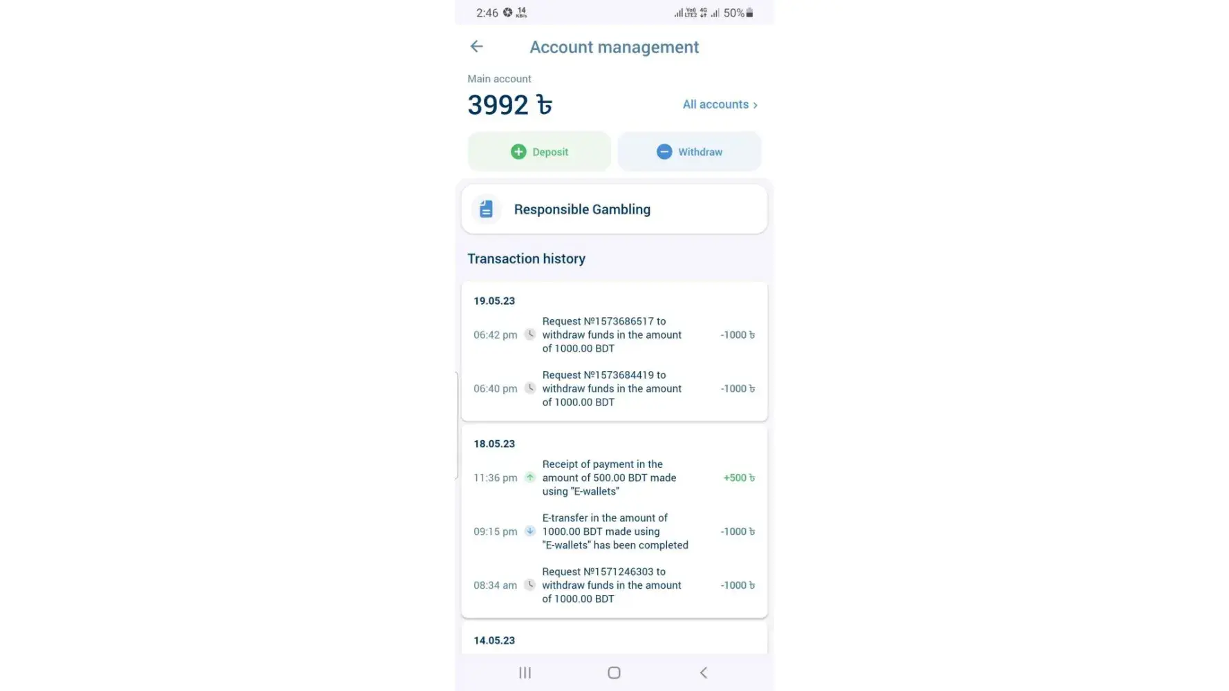 I am writing to express my deep concern and frustration regarding a recent withdrawal I made from my account. On May 20, 2023, at 10:44 AM (BD local time), I initiated a withdrawal of 2000 BDT from my wallet. However, to my dismay, I have not yet received the funds in my account.