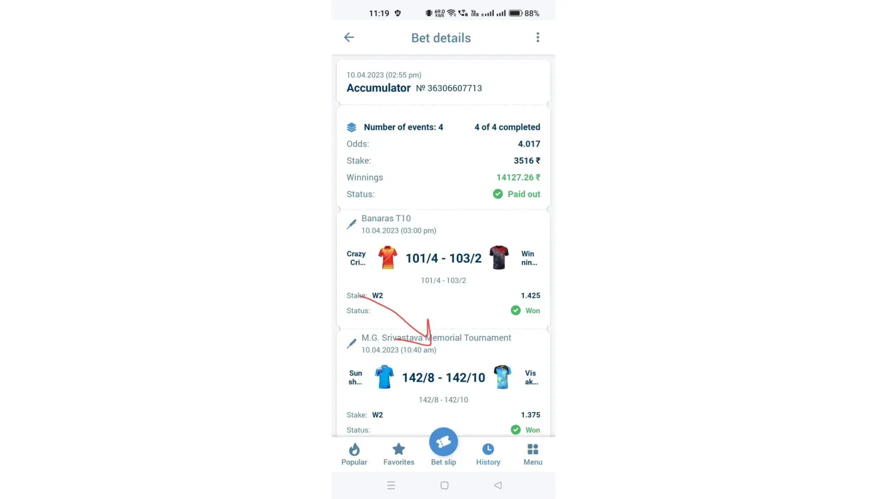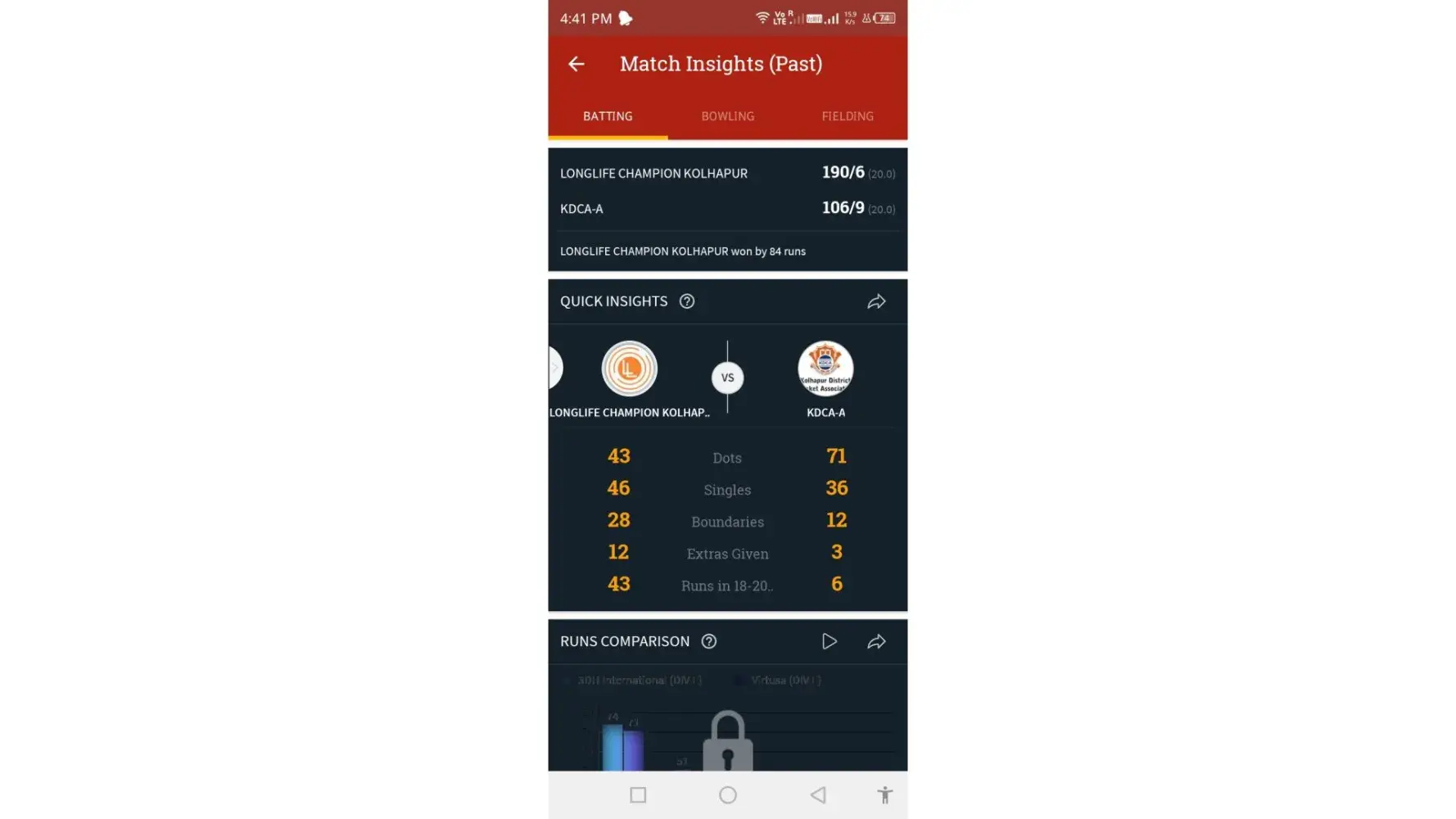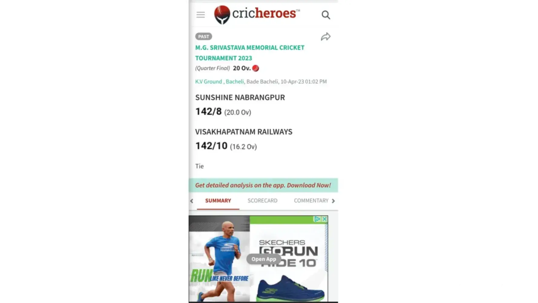 The Cricheroes Scorecard Result vs 1xbet Scorecard Result