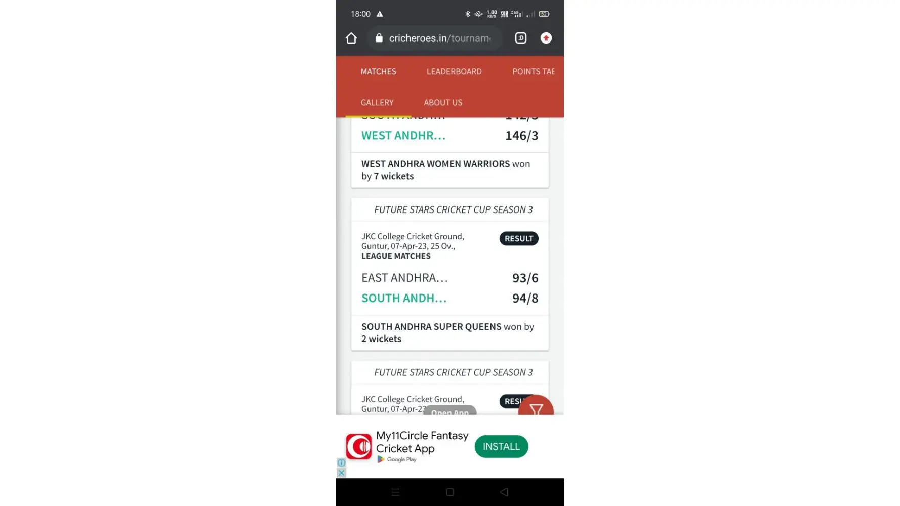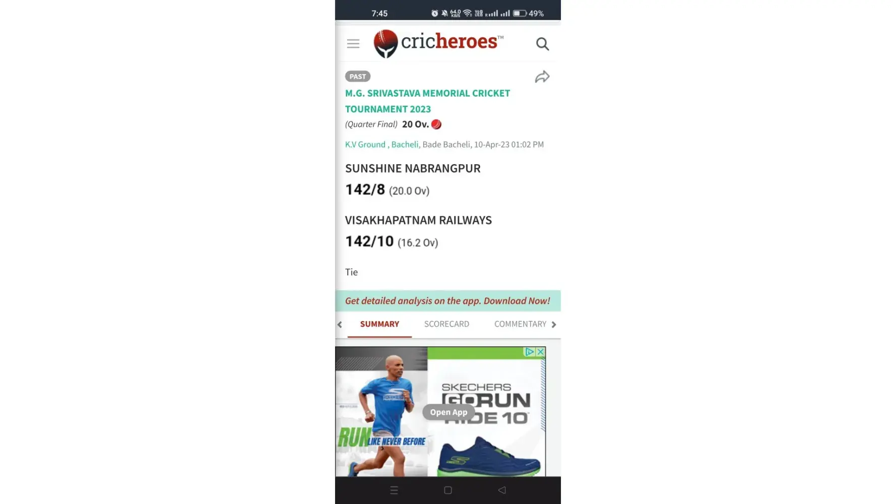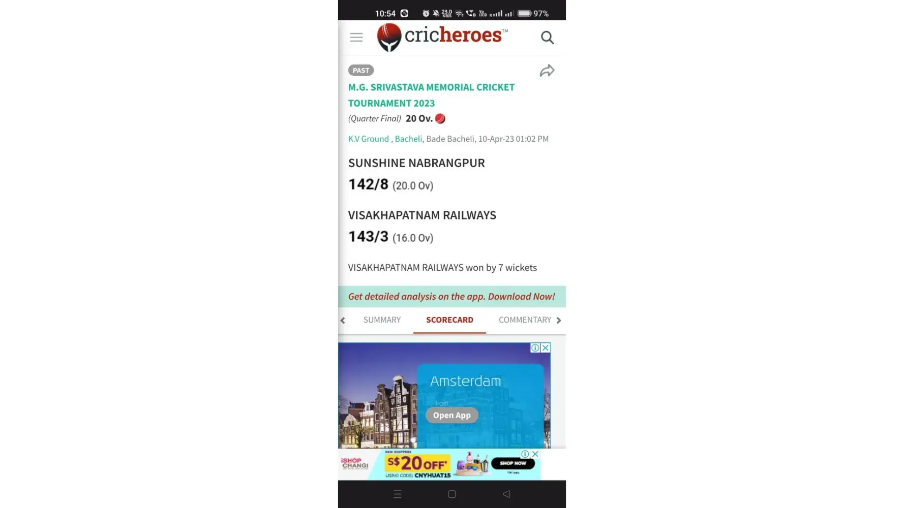 The Cricheroes Scorecard Result vs 1xbet Scorecard Result