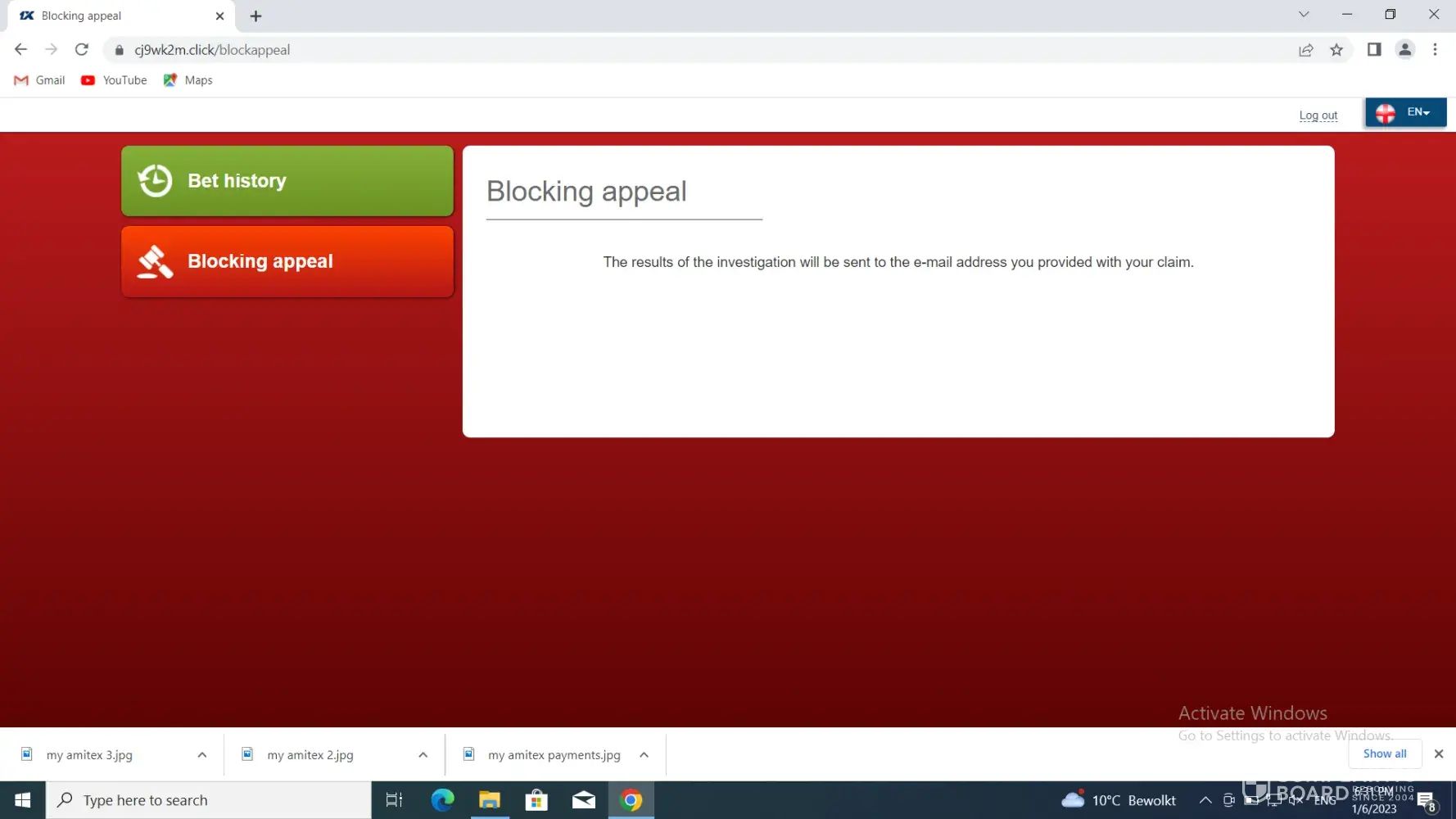 1xBet Account blocked