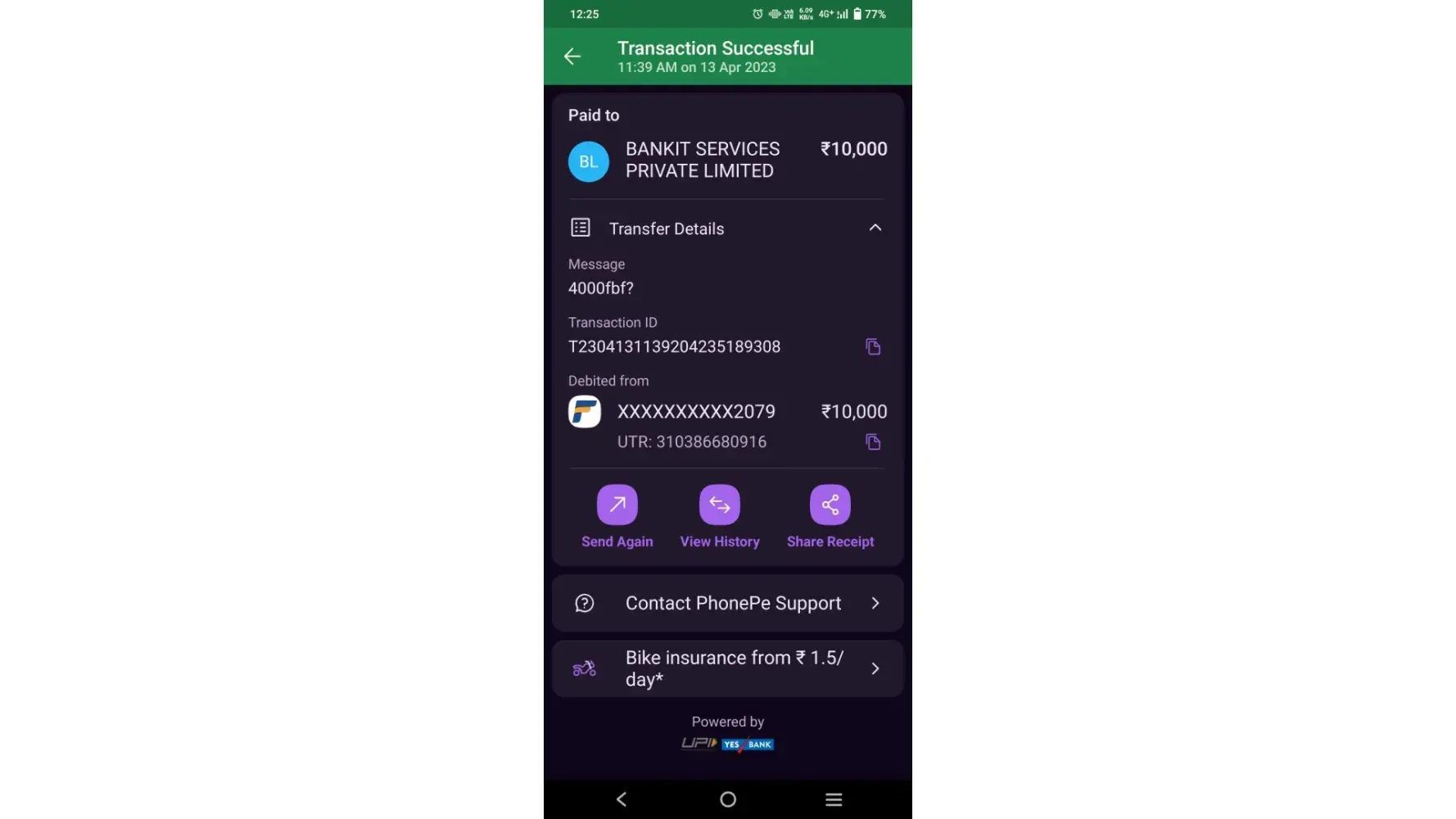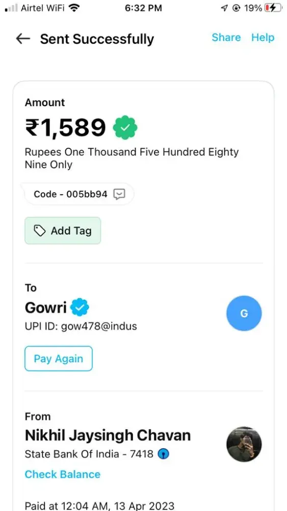 I withdrawal a amount of 5000/-on 29/03/2023 next day i received a notification of that your amount was transferred successfully completed but amount was not credited yet to my account or id request number Request #[protected] to withdraw funds to BHARAT PAY 2