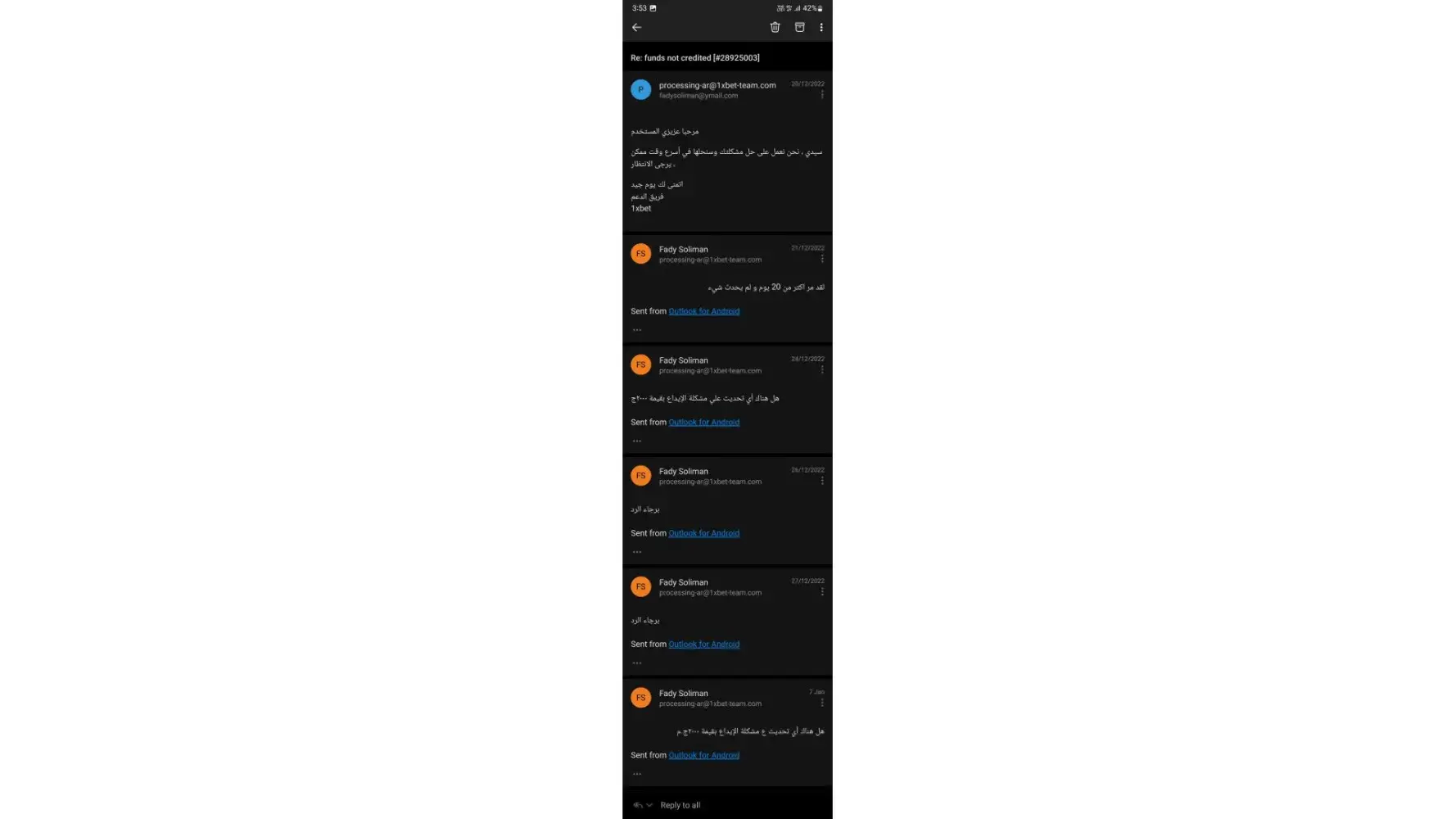 For the past 5 days I’ve been mailing the 1xBet security team, I was unable to withdraw my winning, document request issue, I mailed the security team and provided all they asked for, all deposits from my payment gateway to my 1x account was provided in PDF, identity document was provided too, all screenshots too was sent, This morning I texted for a follow up, now I was told to make a screenshot from PC, of which you can’t access the transaction history of an Account on Opay online using PC, honestly I’m tired, and I’m losing it all.