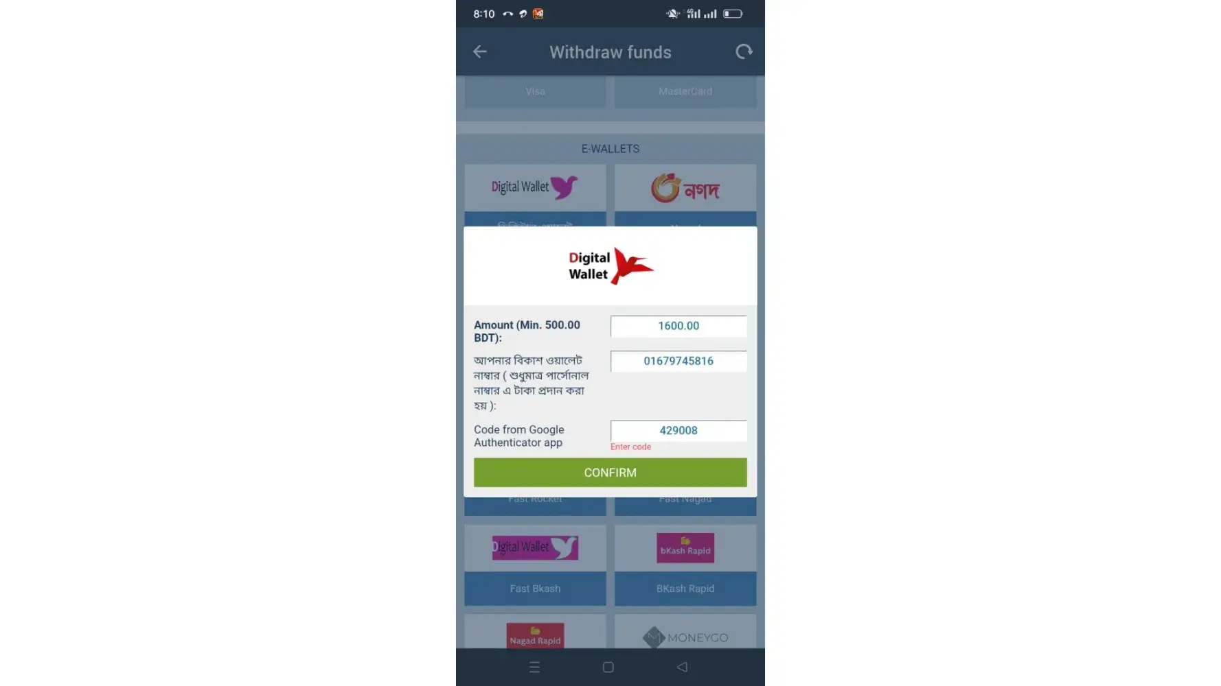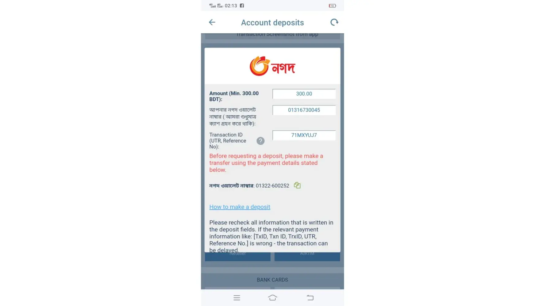 মার à¦à¦‡ উইডà§à¦°à§‹à¦•ৃত টাকাটি সঠিক à¦à¦¾à¦¬à§‡ পাইনি। যেমন আমি ১৬০০ টাকা উইডà§à¦°à§‹ দিয়েছিলাম যা আপনারা à¦à¦•à§à¦¸à§‡à¦ªà§à¦Ÿ à¦à¦¬à¦‚ কনফারà§à¦® করেছেন। কিনà§à¦¤à§ আমার কাছে টাকা à¦à¦¸à§‡à¦›à§‡ মতà§à¦° ৬০০ টাকা। বাকি ১০০০ টাকা কম আসার কারন যানিয়ে আমি à¦à¦•টি ইমেইলও করেছিলাম। কিনà§à¦¤à§ ১২ ঘনà§à¦Ÿà¦¾ অতিকà§à¦°à¦® হয়ে গিয়েছে। অথচ à¦à¦–নো পরà§à¦¯à¦¨à§à¦¤ কোনো রিপà§à¦²à¦¾à¦‡ পাইনি। দয়া করে আমার পাওনা অরà§à¦¥ আমাকে বà§à¦à¦¿à§Ÿà§‡ দিন। হেলো সà§à¦¯à¦¾à¦° আপনারা à¦à¦–নো পরà§à¦¯à¦¨à§à¦¤ আমার à¦à¦‡ সমসà§à¦¯à¦¾à¦Ÿà¦¾à¦° কোন সমাধান করেনি।