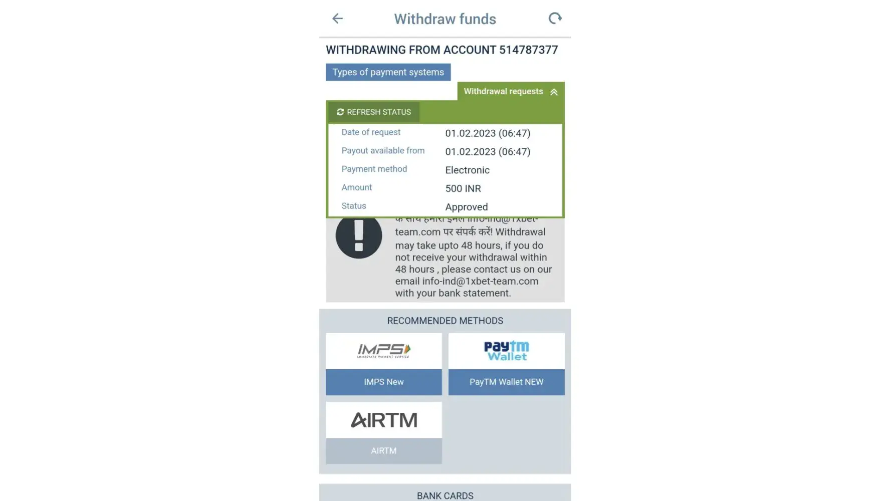 Thereof, my 1xbet account was not updated with my 350 rupees