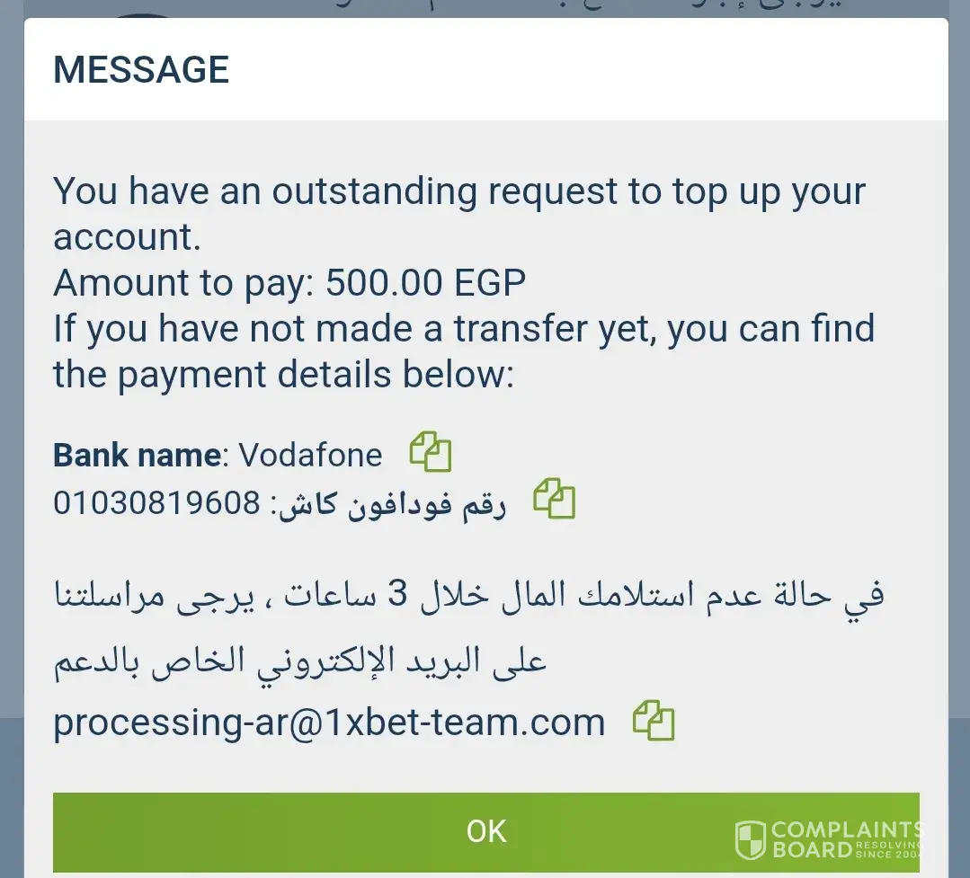 They didn't approve my account for exactly 10 days. Today morning, I received an email from the email stating that your account has been blocked. Whatsapp number is not valid, he wrote a complaint and made me wait "Trust me. Then he said that you need to send the money from your payfix (internet banking used in Turkey) account to the account I gave you. He said to confirm your game account, "As soon as you send your Whatsapp number, your account will be active". I believed and they sent me. I sent the money to the account in the photo 3 times. I promise your account will be opened. He wrote all day long so that it will be opened at exactly 20.30 and the last time I sent the money to the account they wanted, I sent a message to the whatsapp number, he blocked me. I cannot log in to the 1xbet game account and I sent the money they sent from my Payfix account to another account We didn't cheat, my mother's account is separate from my account, the same bets are definitely not there.