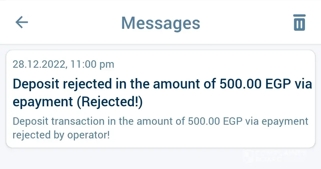 Last Wednesday I have deposited EGP 500 via InstaPay to Vodafone cash wallet. However, I got a message on the app that my deposit was rejected.