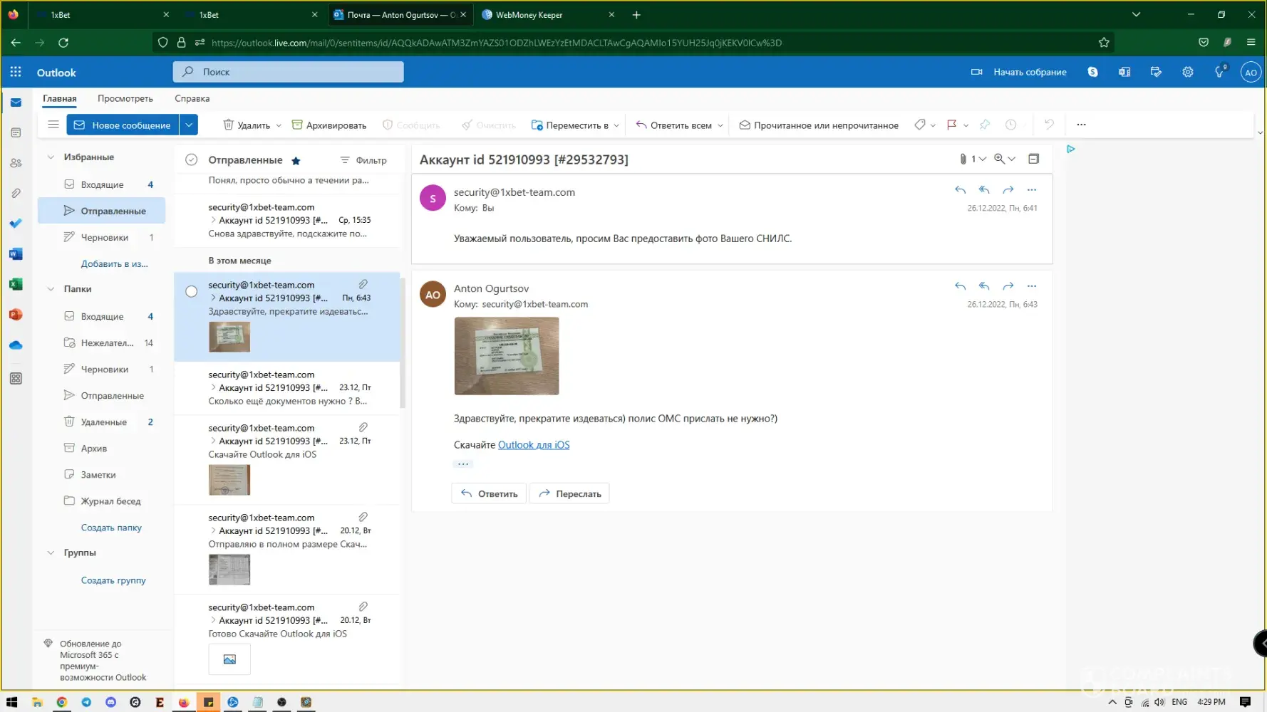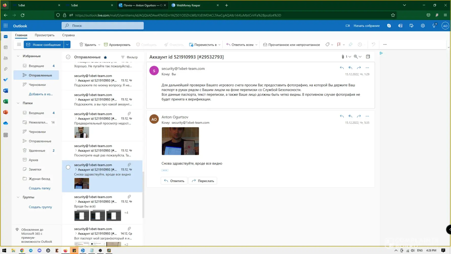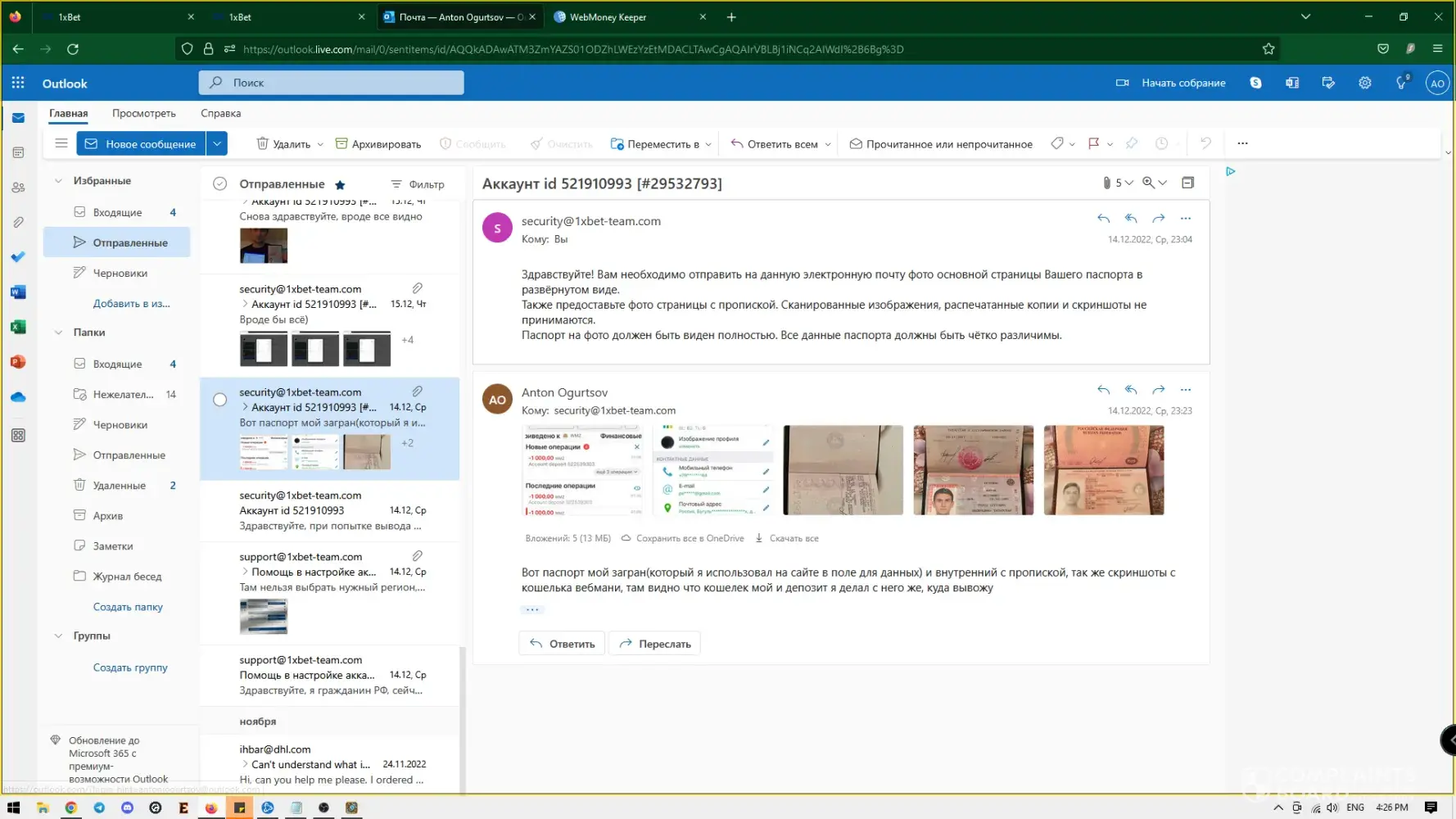 To verify the authenticity of my personal data, I was asked for photographs of my documents. All this I have successfully provided. Then I was asked for screenshots from webmoney , which I also successfully provided. After that, the support service requested a photo where I keep my documents against the background of conversation with them, I had to take these photos twice, because the first time they didn’t like something.
