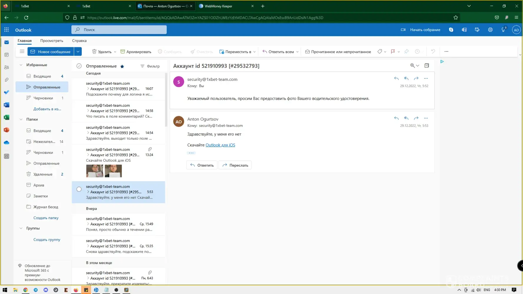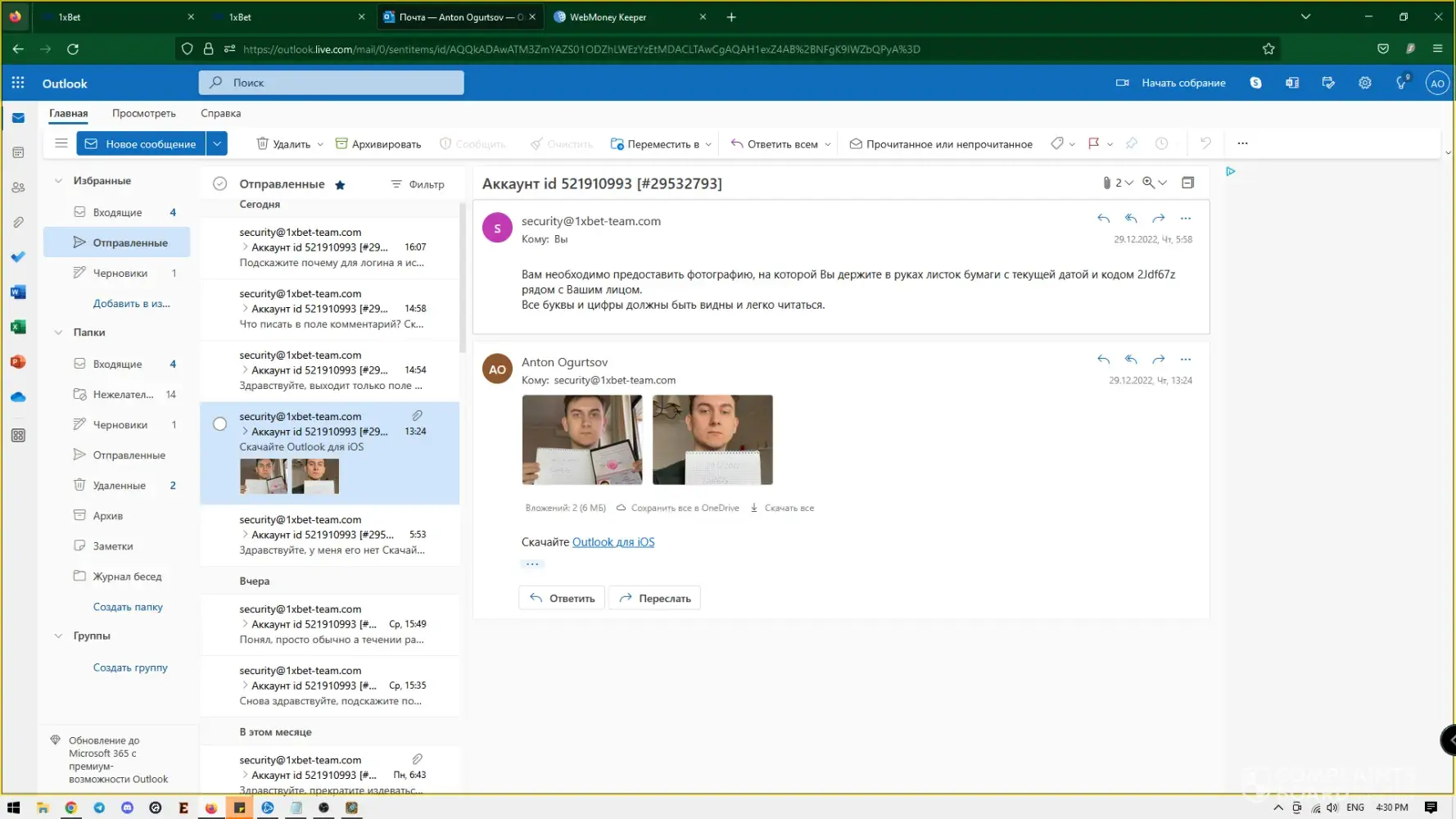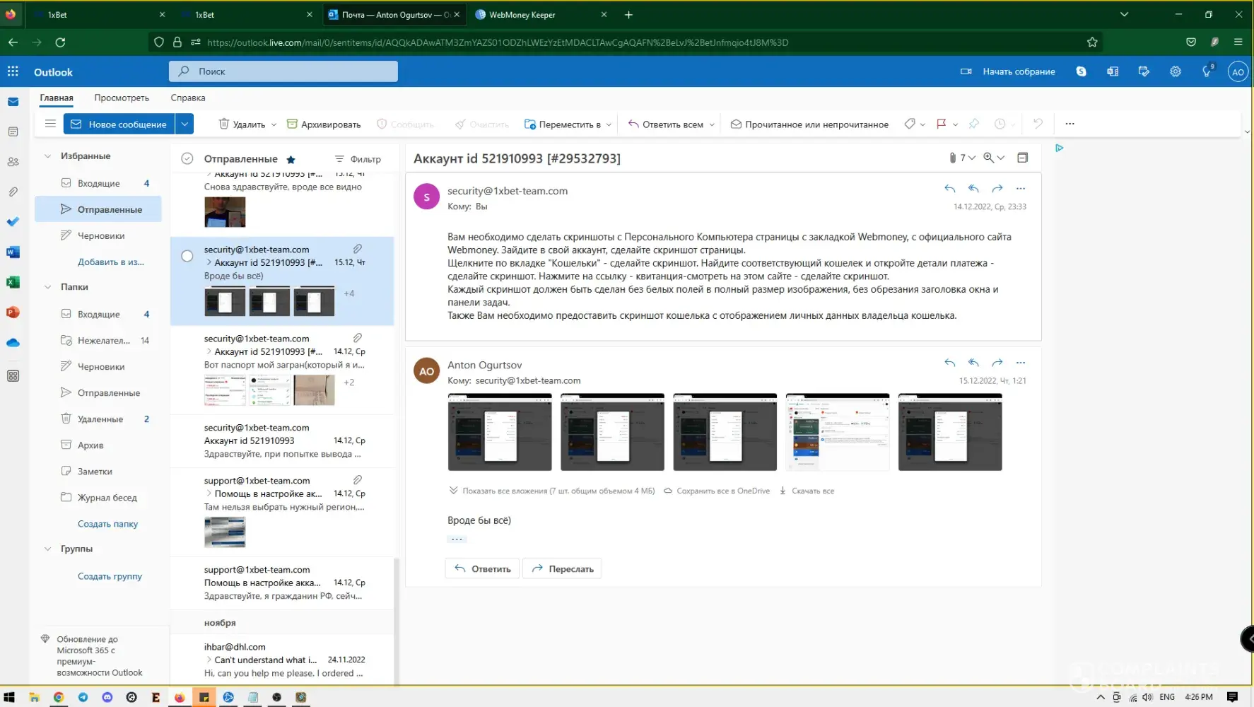 To verify the authenticity of my personal data, I was asked for photographs of my documents. All this I have successfully provided. Then I was asked for screenshots from webmoney , which I also successfully provided. After that, the support service requested a photo where I keep my documents against the background of conversation with them, I had to take these photos twice, because the first time they didn’t like something.