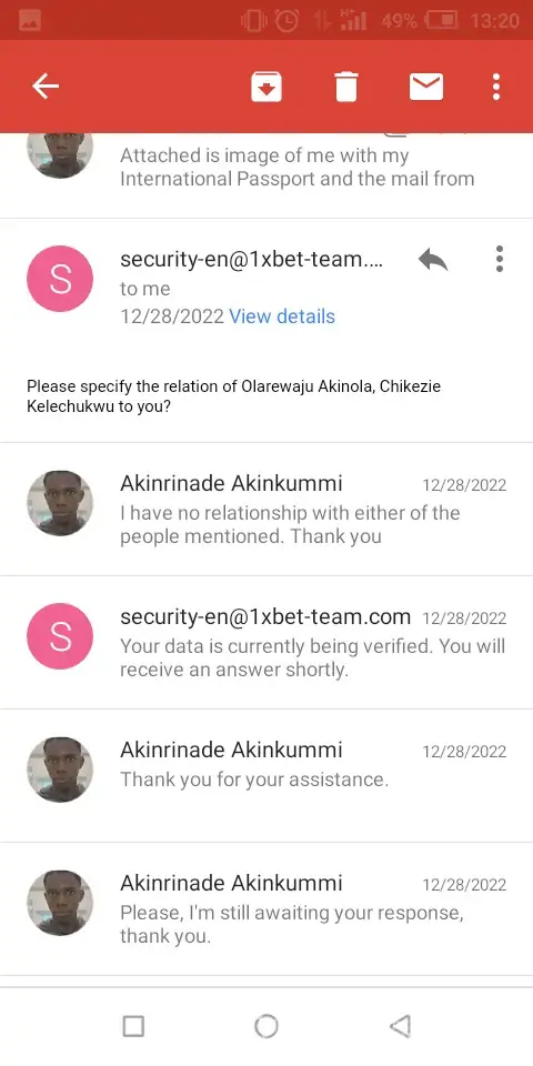 Thank you for the reply. However, I tried already contacting you via processing-ar@1xbet-team.com since last Wednesday but without any action till date.