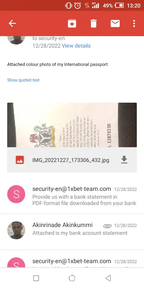 We sent the documents they wanted for 10 days, none of the bets are the same, so now my hand is shaking with anger, both accounts are still clean and this whatsapp number is deceiving me, using my account and blocking me, now what to write, I will report you everywhere, I will not let you go...