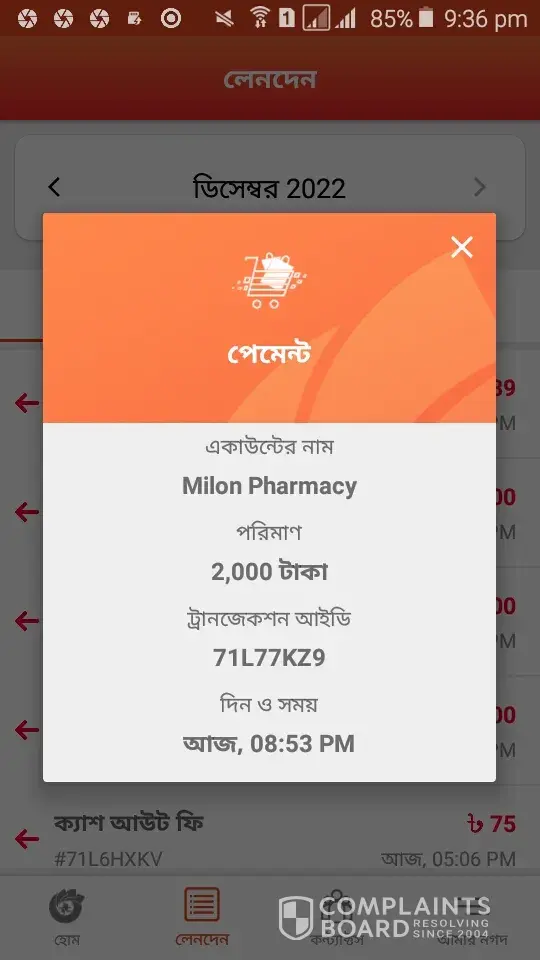 #Payment done to: Milon Pharmacy