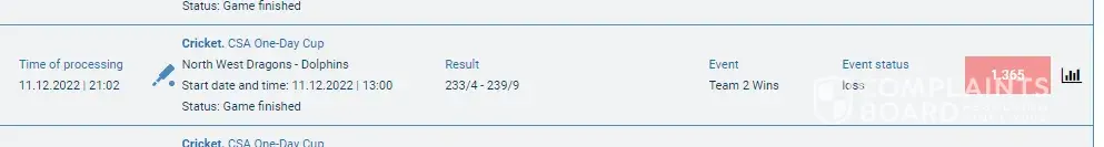 Hi, sir my account number [protected] i placed a bet on sport yesterday, and one of the slips was wrongly calculated and lost my multi-bet. The bet id number â„– [protected] and the match between dragons-vs-dolphins was 47 overs match and the Dolphins win the match within the overs. Can you tell me which rules you applied to lose the slip?