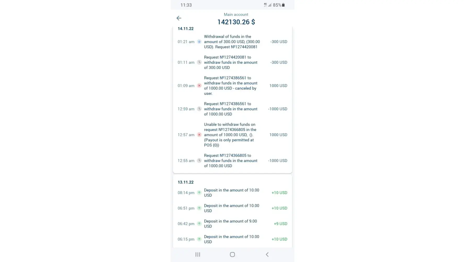 I will attach screen shot for my 1xbet profile, transaction history and rejected withdraw funds .