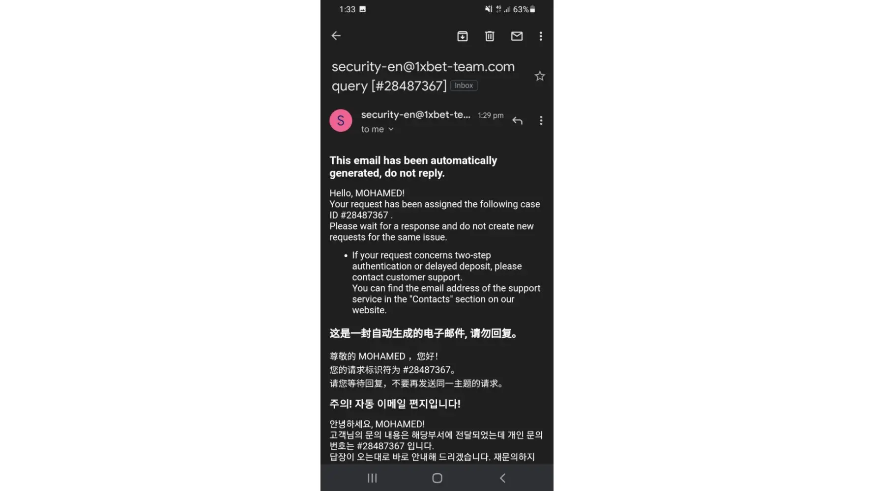 Sir, as mentioned, I am accused of having created many accounts in the company but I have an argument that I do not have other accounts in the company 1xbet, I have one account. On my phone I play with other accounts with a friend and his credentials are available. Also, if the company 1xbet cheats me and does not allow my success, it is clear that it is a thieving company, but I never believed that it cheated me and I believed in an honest company that takes care of its customers. The amount of money I withdrew was a necessity because I didn't have anything else and that proves that I needed help with the money I won. So sir I hope that I will not be treated like that and I will look at you with kindness and respect as a source of kindness and my account and the money that I won will be partially returned because I need help because I have nothing else to do but play gambling.