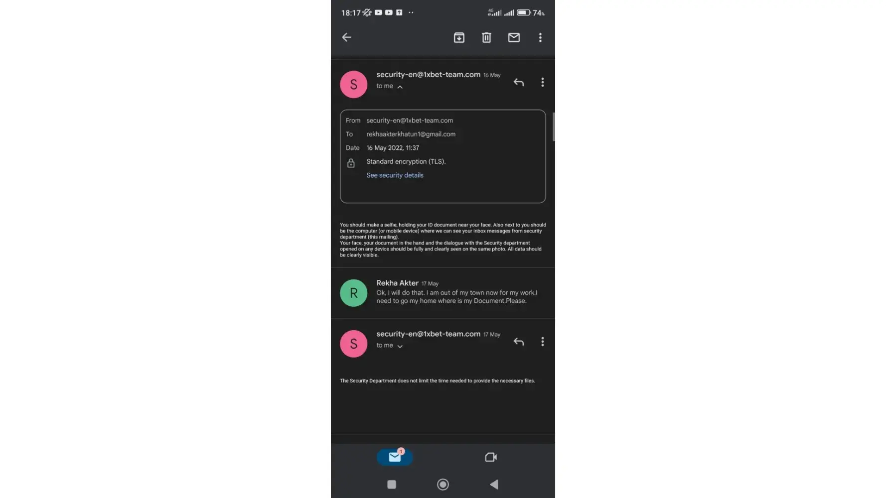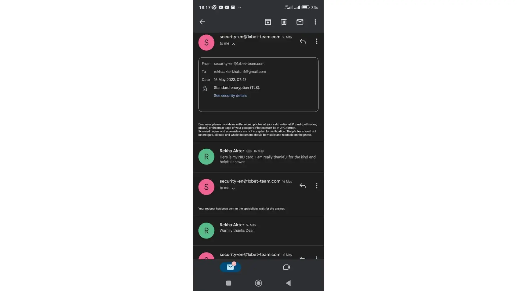 I losed huge amounts that time they never blocked my account. now I am winning some small amount and gave widthraw request they blocked my gaming account immediately although I am playing genuinely. Today I gave widthraw request they declined my widthraw request and mentioned share documents to security department, as they requested I shared the details accordingly. Then, this 1xbet security department asked me to send photos of both sides of my national identity card, which was done, then they asked me lots of questions, I answered correctly. they confirmed to me that my request will be processed. So I waited. After a few minutes, I received the email telling me that my account will be blocked. Suddenly, I try to connect to my 1xbet account, no more access. 1xbet is really a scam business. Despite sending the national identity card to the 1xbet security department, my account has always been blocked. I am still waiting for my game account to be unlocked because this account has + $142130.26.