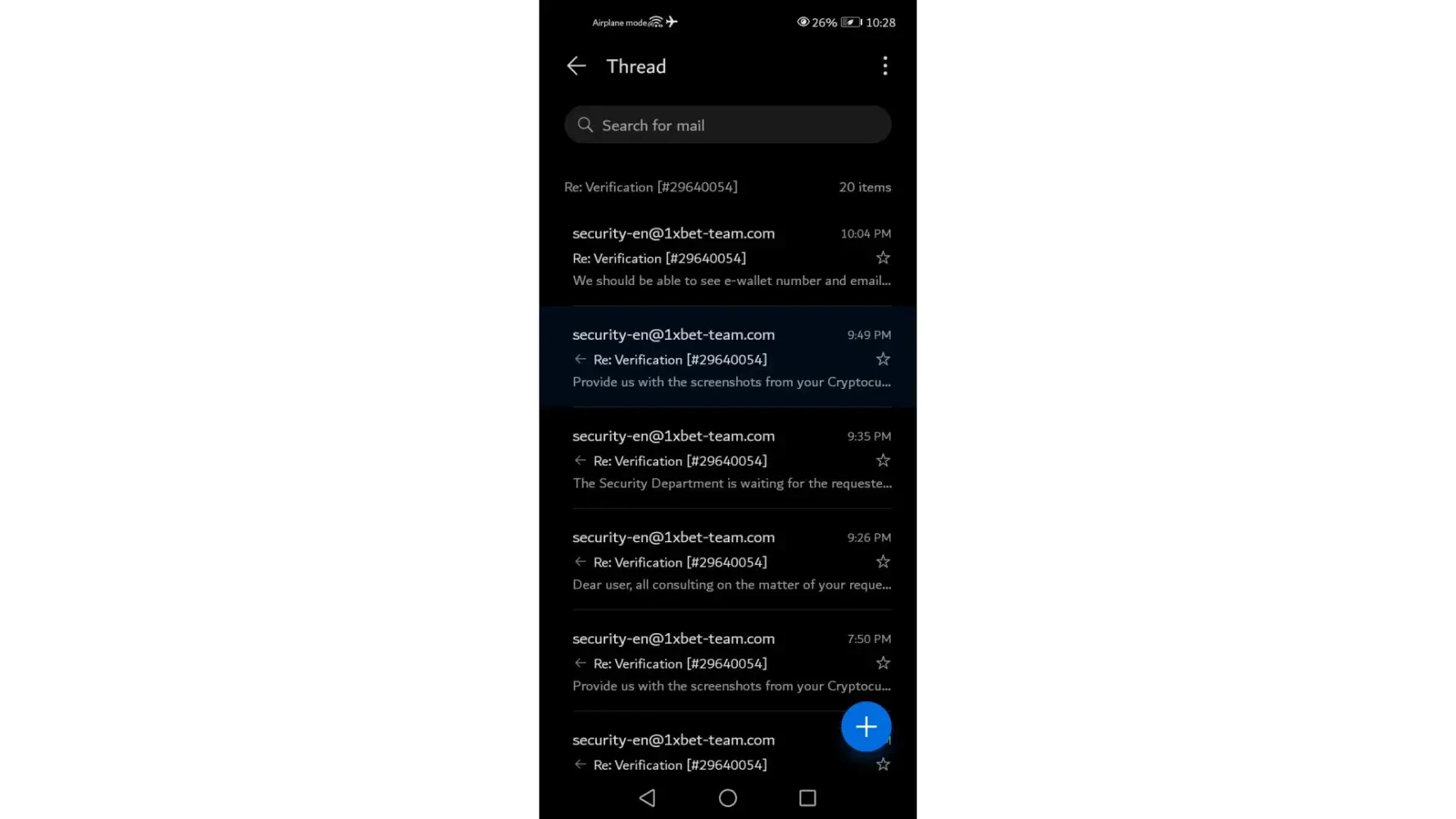 info-en@1xbet-team. com is not a valid emailed address I emailed to [ transaction-bn@1xbet-team.com ] with all the proof I have but they are not adding my money to ID. Why you create drama,always.