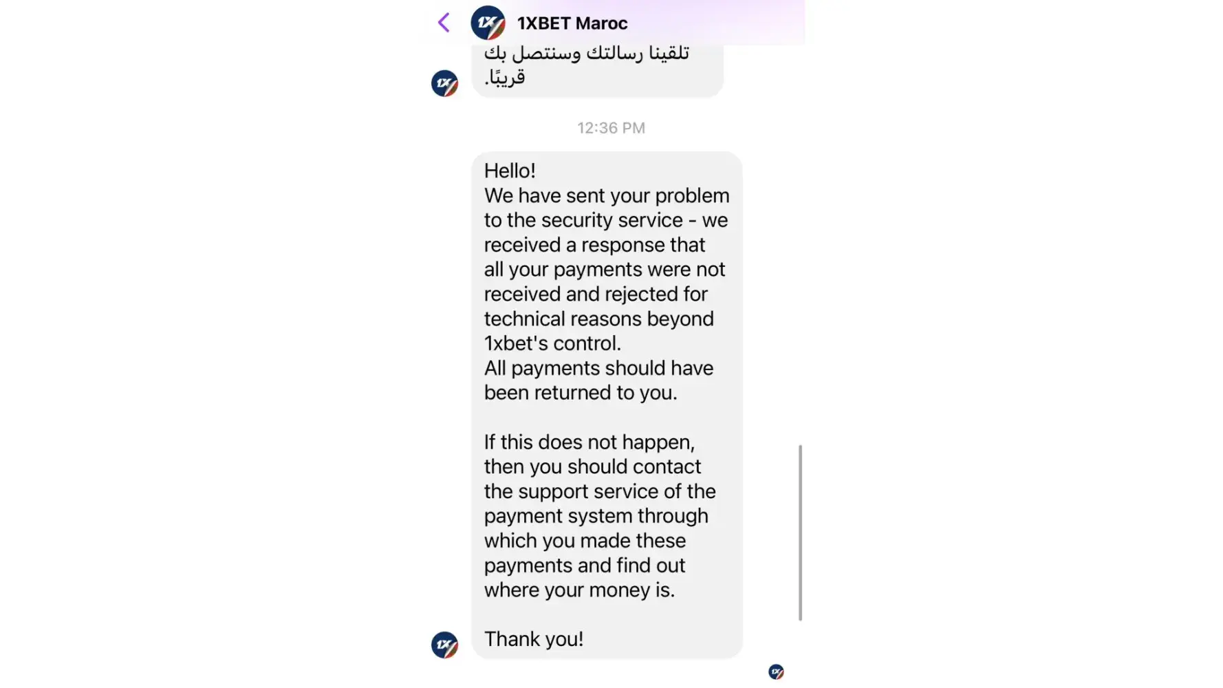 1xBet has left an official reply on this complaint.