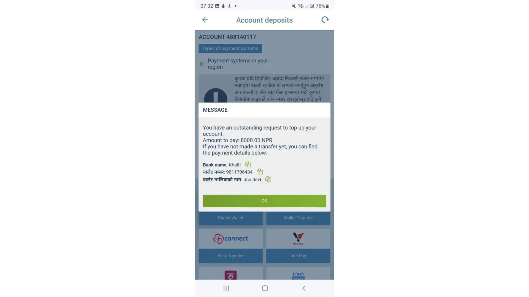 I have tried to add money from Nepal through Khalti but the agents didnot responded after transfer money. My 1X Bet id is [protected] . I tried 8000 from khalti account but didnot load in my 1X. I can attach the receipt for the transaction .and also provide you the request of payment made.The key serial number and transaction id is in the screenshots.