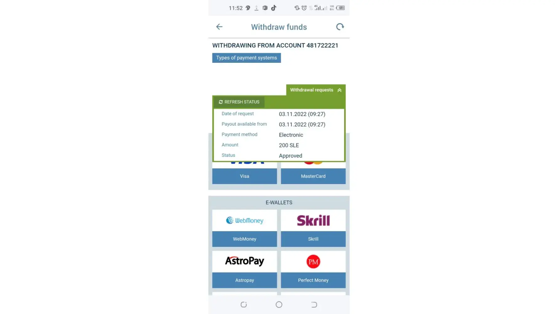 On the 3rd day of November 2022, I withdrew 200 I received notification for the withdrawal but not did receive the money Le 200.