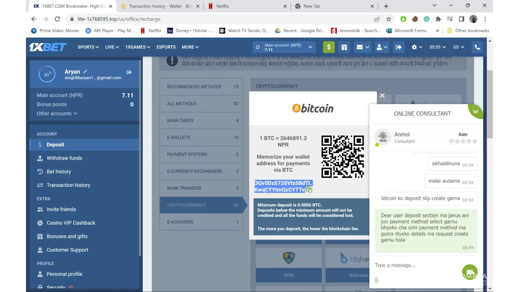 I deposited 0.02833228BTC though Binance to my 1xB.et account on [protected]:46. I called and even emailed then about the problem and they just made me wait everyday by telling me my problem is being looked after and today they told me that they can't do anything because the deposit hasn't reached in their wallet and I have done some kind of mistake or something. I had deposited before this as well and this problem never occurred with me. This was the first time that I deposited this big amount and they claimed that they did not receive the payment. Please help me receive my payment or atleast refund it by any means.