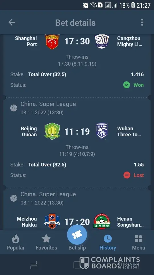 1xbet is giving us hard time when coming to settling Throw ins bets correctly. Yesterday i placed a bet on Chinese Super league between Wuhan Three Towns and Beijing game Throw ins over 32.5 but to my surprise, the bet declared lost hence the stats say there were 37 Throw ins... i wrote an email to support and also had a chat with consultant but they failed to rectify the mistake.