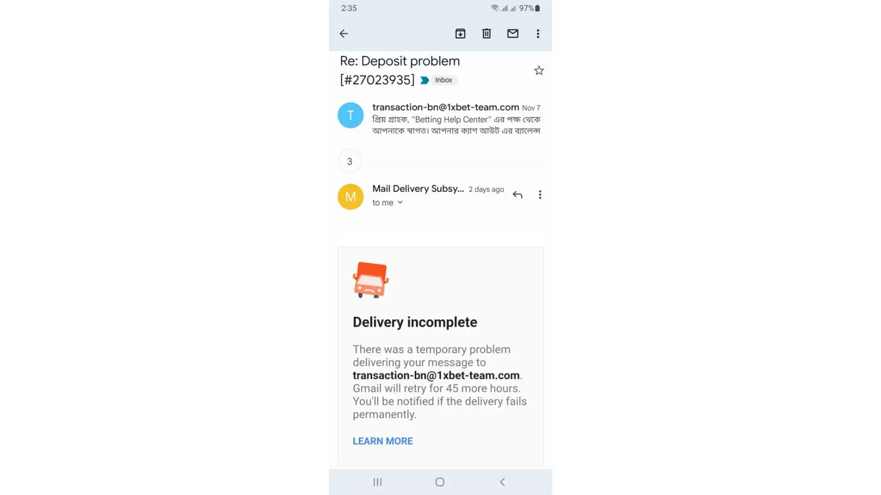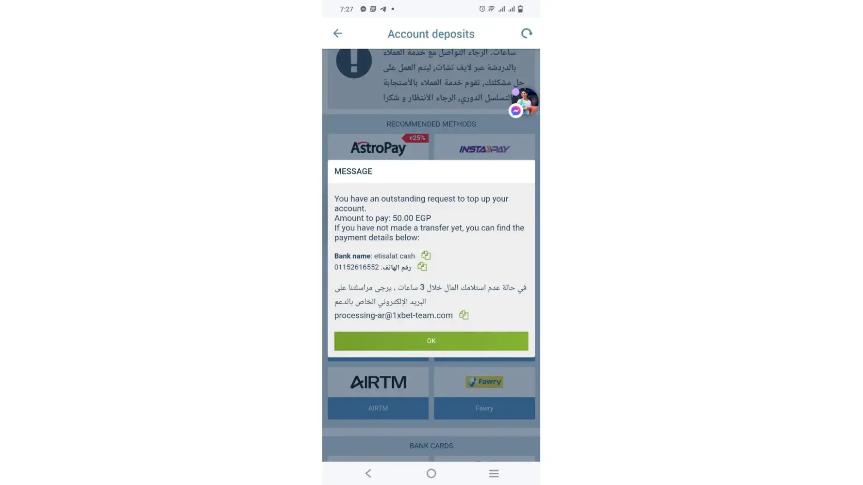 Deposit Not Credited to my 1xBet account