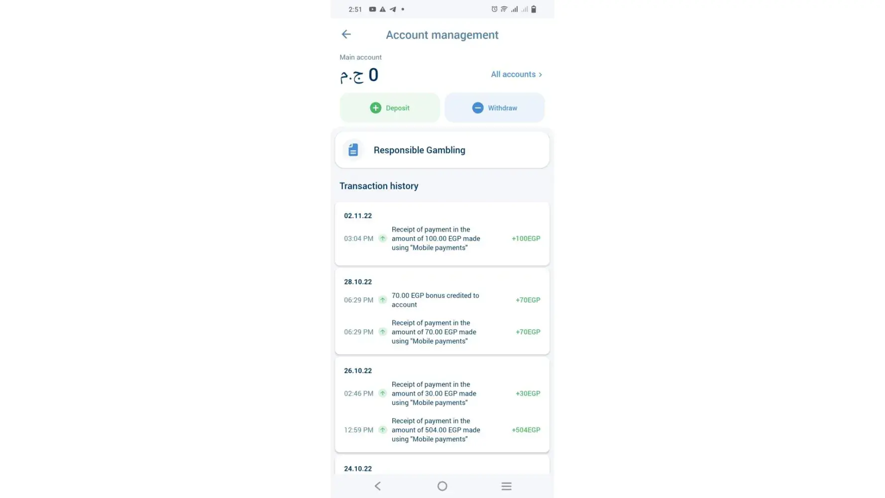 I deposited 660k naira into my account using my mom's ATM trying to play a game of 2 odds. I later lost the interest to play the game and tried withdrawing my money. I was told I had to play a game of at least 1.1 odd to be able to withdraw my money.