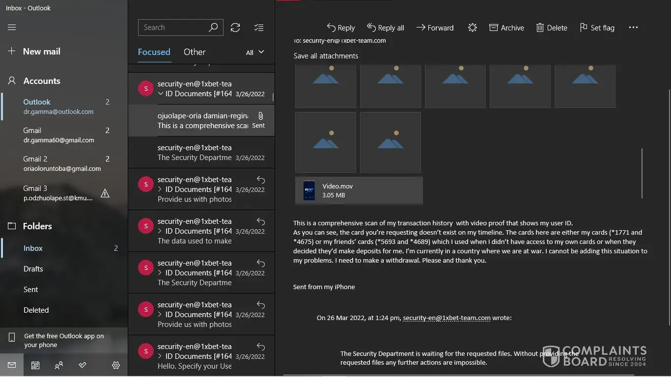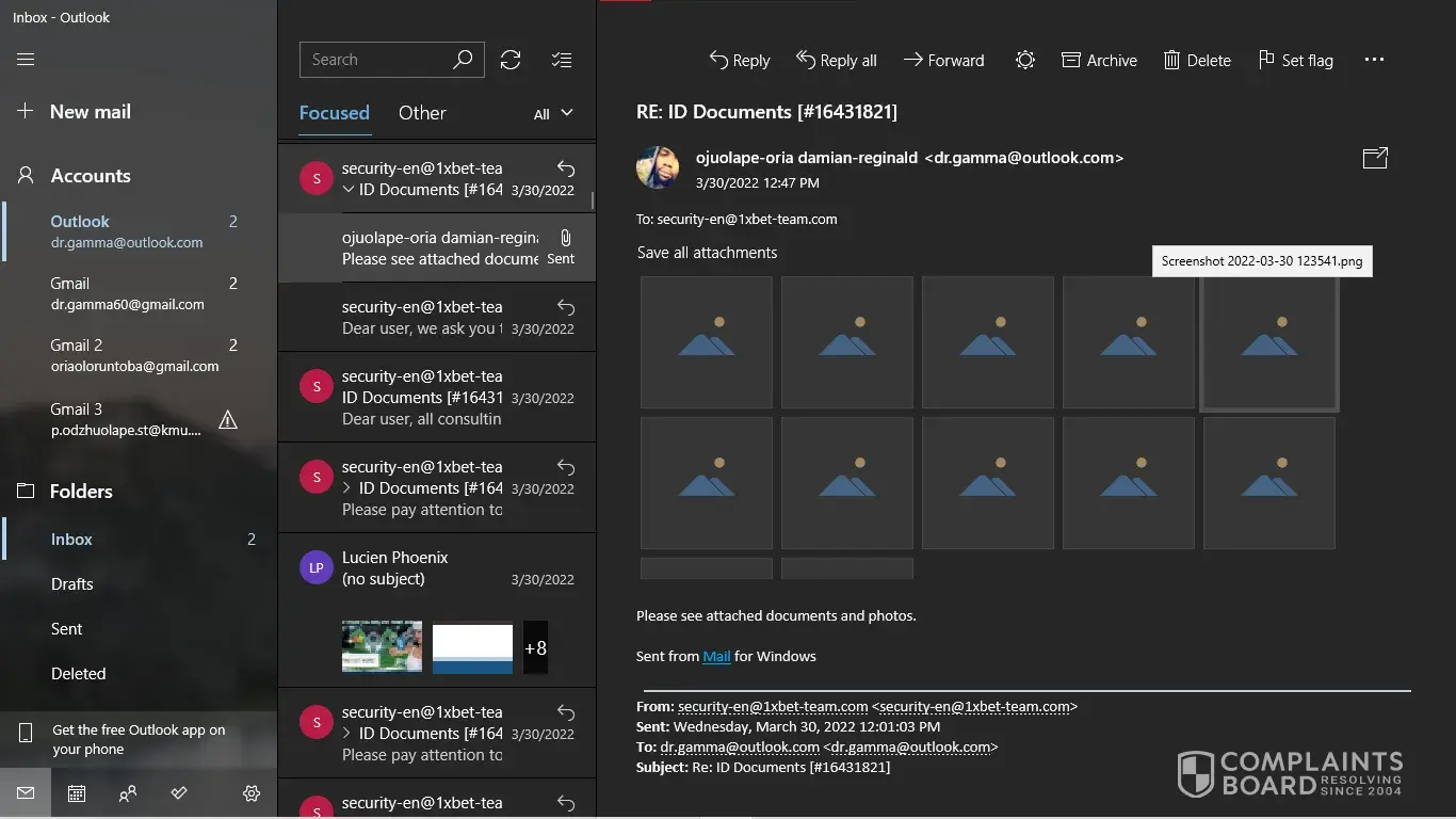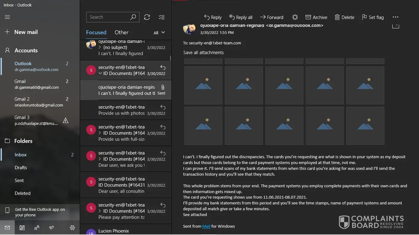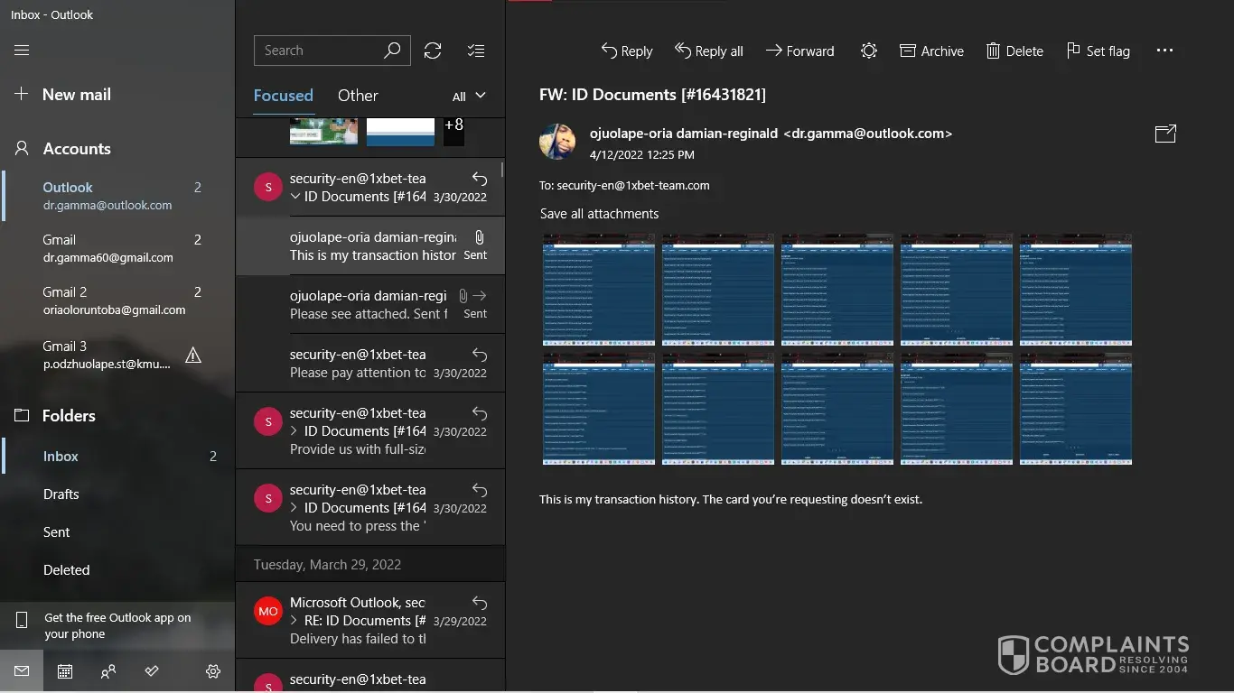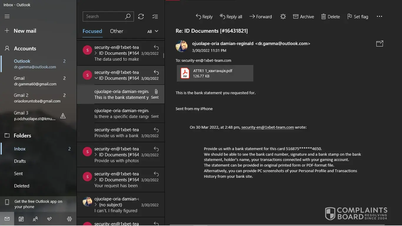 I have my NID card, My last deposit screenshot. But [protected]@1xbet-team.com don't response my mail after see my account id.