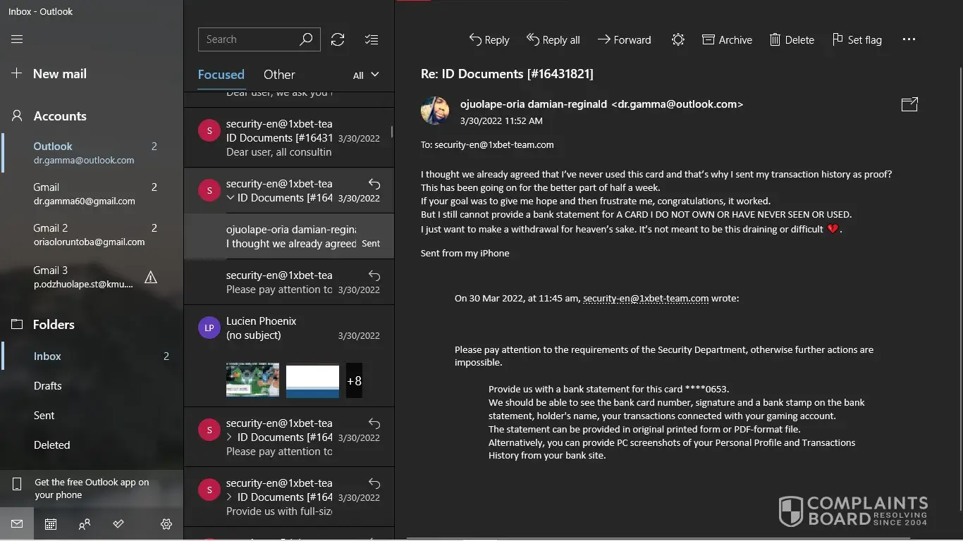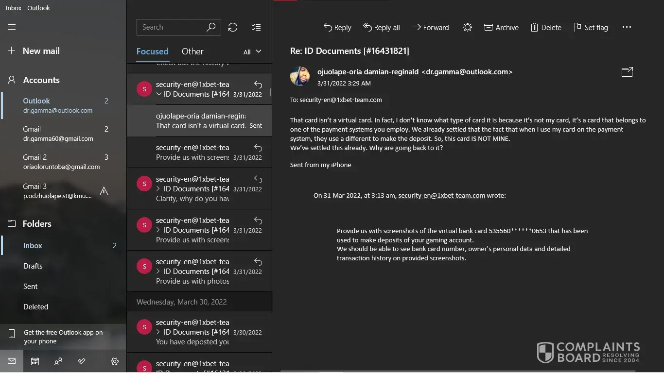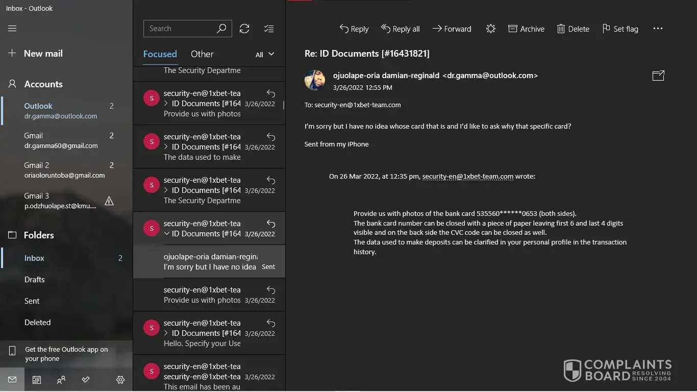 Where my issue started was when I was requested to provide snapshots of a bank card that I've never used to make deposits on this site. Bar that, I've never even seen the requested card let alone used it.