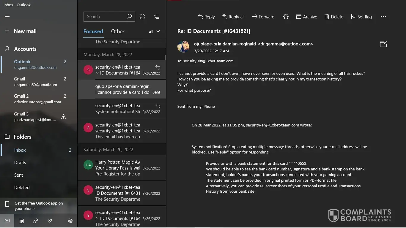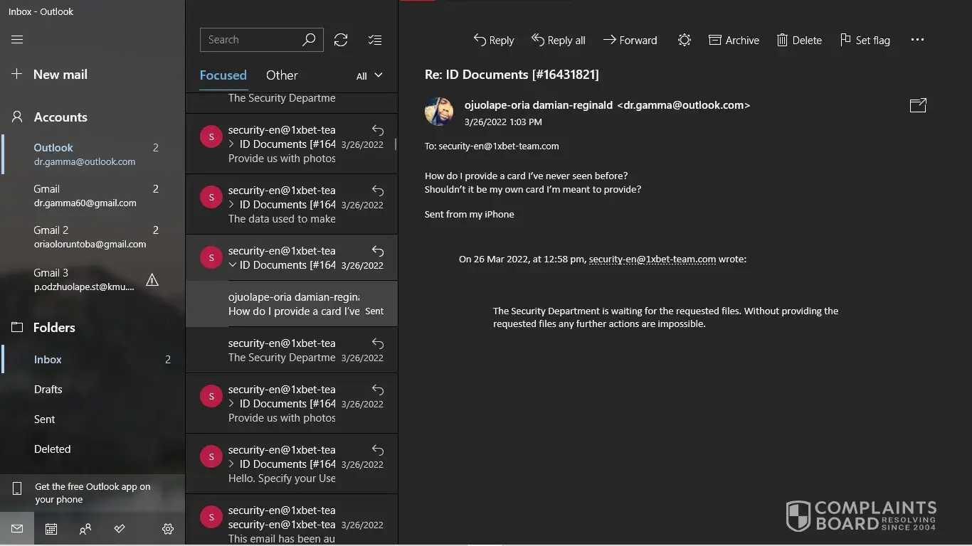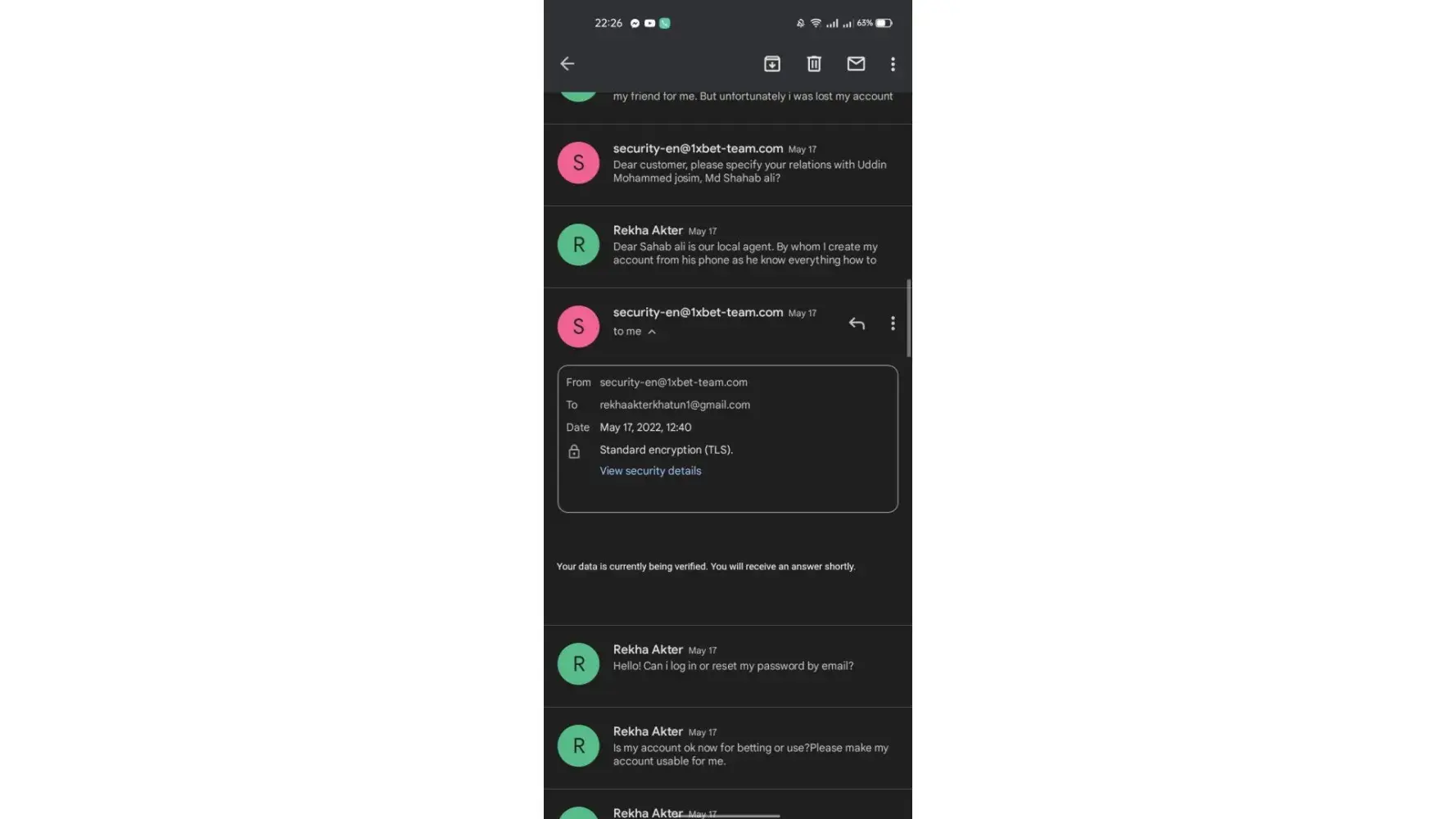 [protected]@1xbet-team.com wants my NID card, My selfie, Deposit screenshot and asked some question. I gave everything and they received everything and replied me "Your data is currently Being verified You will receive an answer shortly"