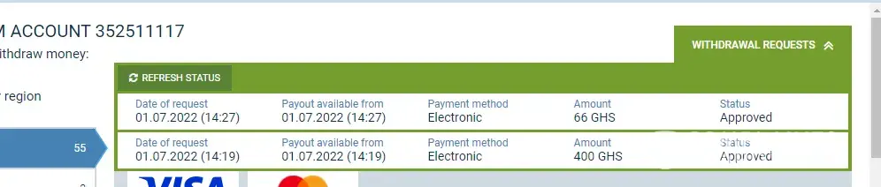 I made 2 withdrawals to my account [protected] in the amounts GHC400 and GH66 but till now is the process is not complete though on the withdrawal menu is indicated that APROVED. To me, this problem is a minor problem from they side and could be fixed in not time. I followed all the protocols and send messages and required documents to those concerned but "wait" and "don't duplicate this email" has been the songs I hear. How long shall we continue wait?