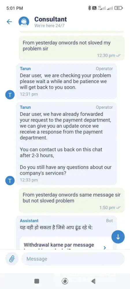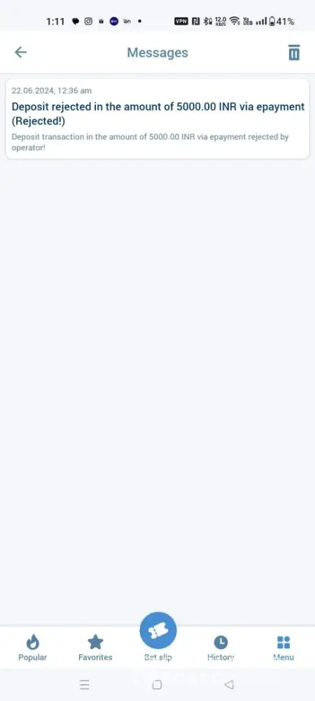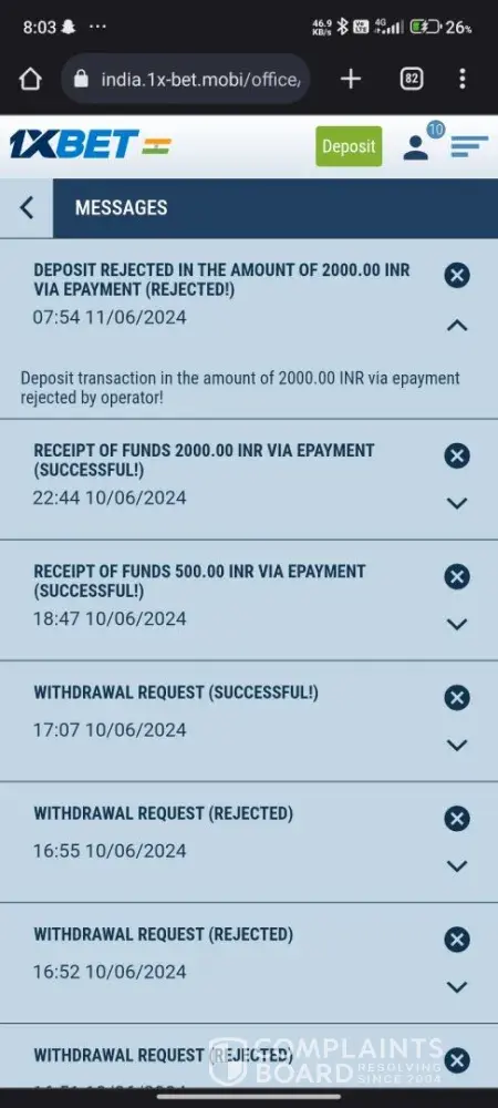 I have deposit 4000 and 2000 inr on 8th june 2024 , I even talked to there customer care they told I will receive the deposit after resolving and gave them necessary document and utr and in morning I am seeing my deposit rejected by operator! And most of the time no operators are available!