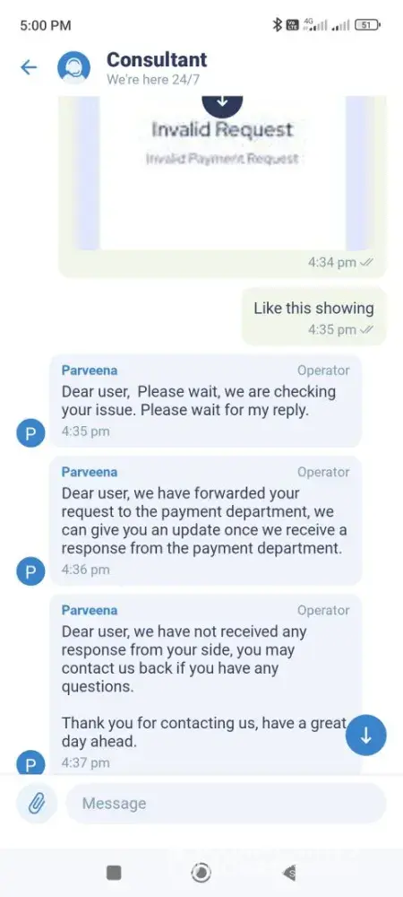 We didn't get any response from payment team "