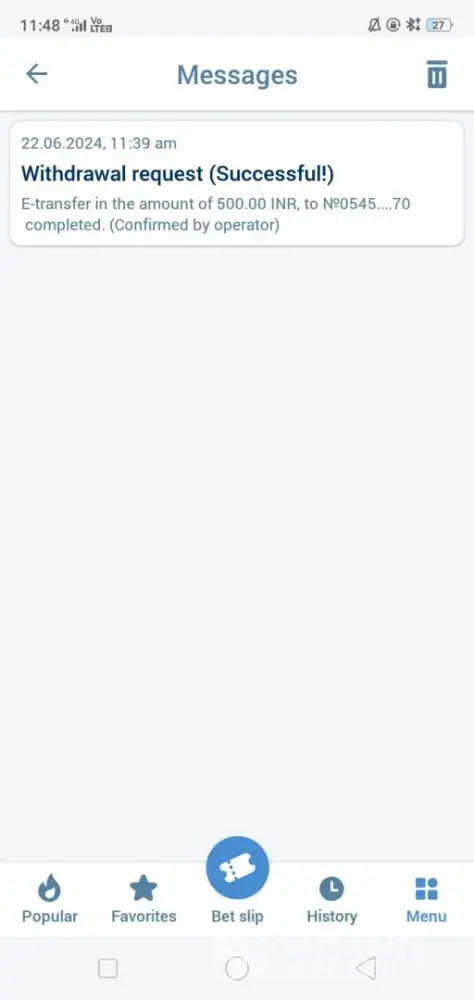 This is so disappointing for me... My withdrawal is not received they are saying that it's is confirmed by operator but didn't receive in my account 500rs and my deposit is also pending i have made several complaints before this I lost 300 also due to company negligence now again