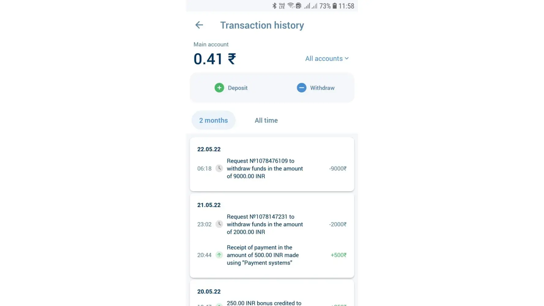 Also if any doubts , you can check my previous deposits for last two months