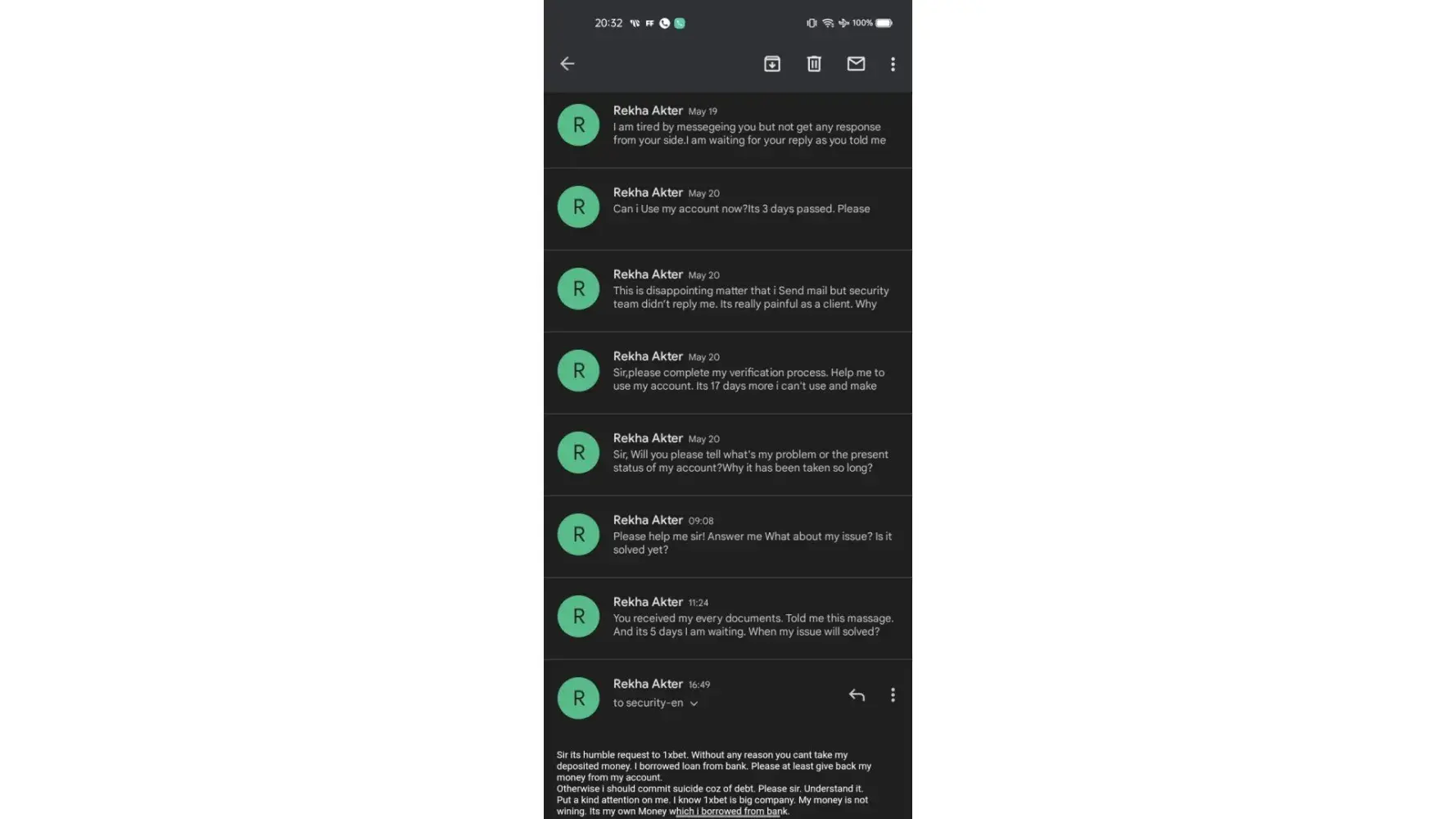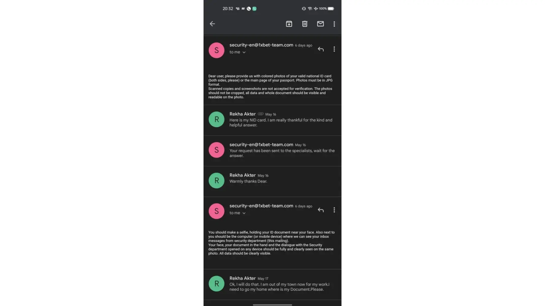 I have been depositing on 1xbet and playing games. Sometimes I win, Sometimes I lose, even when I lose 1xbet don't tell me anything but wen I had a few consecutive winnings and the total money in my 1xbet account summed up to 450,000 naira. Yesterday, I tried to withdraw and I got an error message asking me to message the security department for some documents. I thought it was just another form of KYC process and I messaged the security department. They told me to upload my debit card that I use in depositing. I uploaded the front and back, they asked me for my bank statement in PDF format and I uploaded it to them, they asked me for a selfie with my passport which I sent and they asked me a few other questions which I answered correctly then they told me to give them some time to verifying my details.