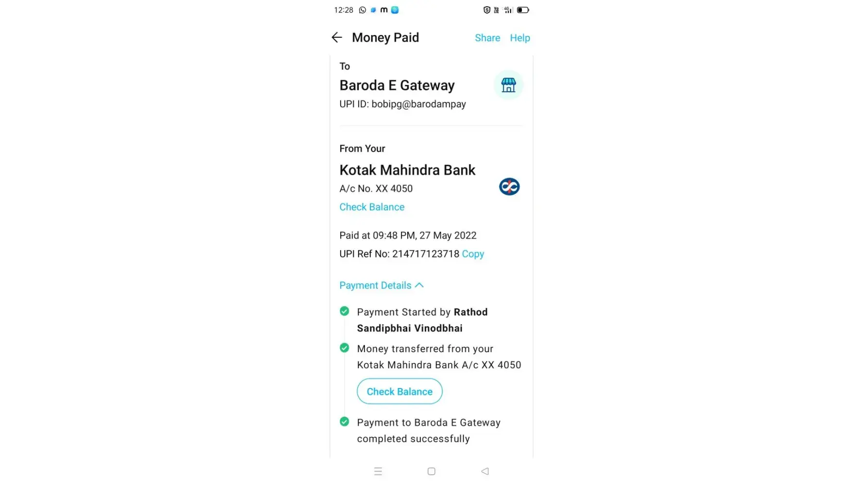 Bank statement/ screenshots already been shared multiple times as per communication