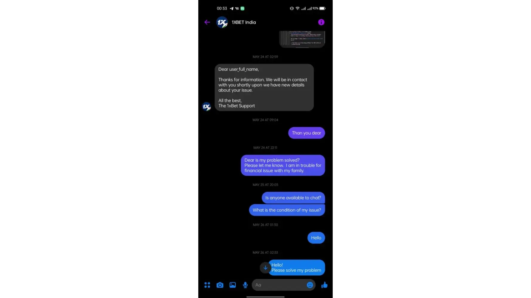 Thank you 1xbet team.