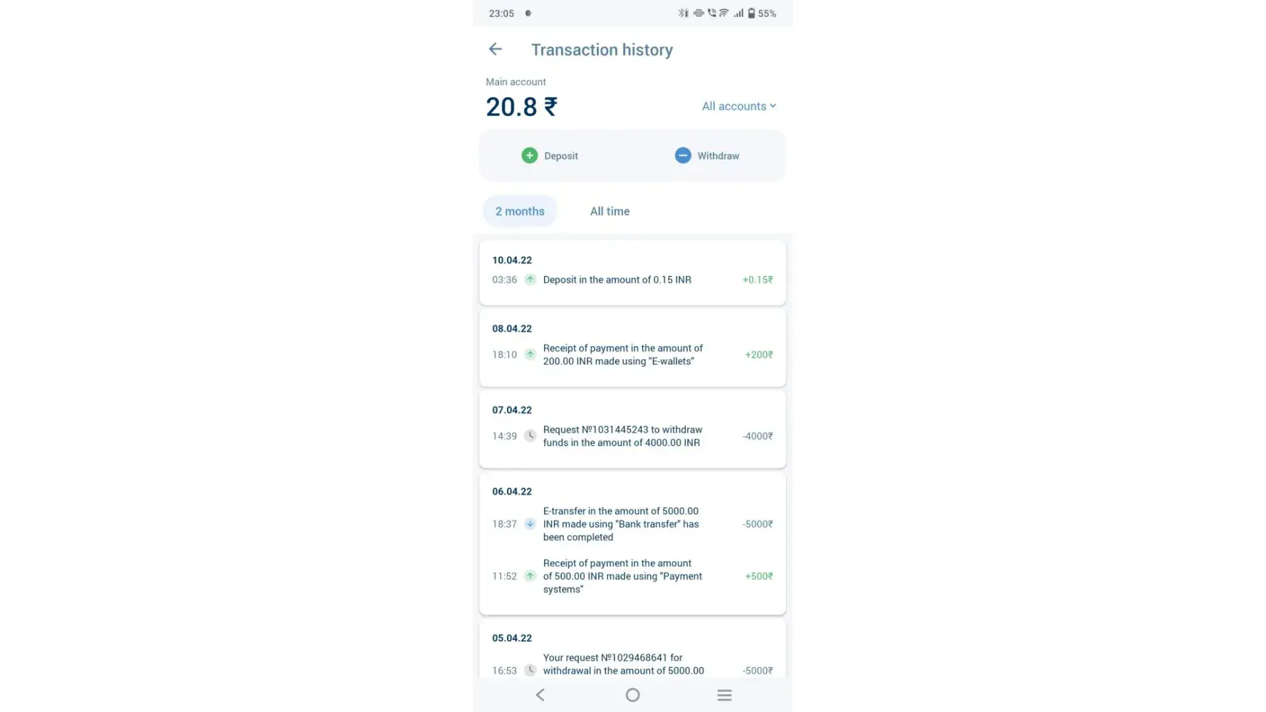 All is fraud.. High level advertisement hai with big players and in India they have no any customer support. Deposit within 1 minute but withdrawal you have to wait 72 hrs and it's also totally fake not received.