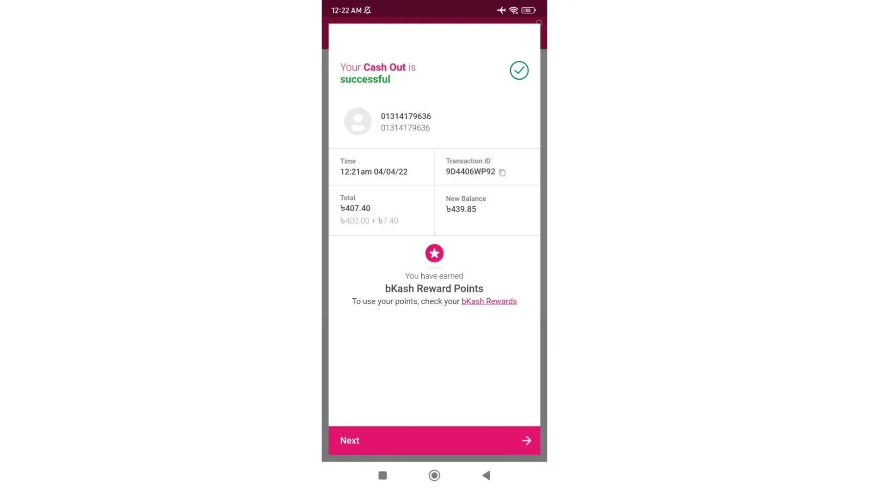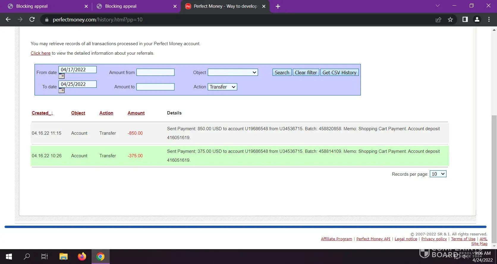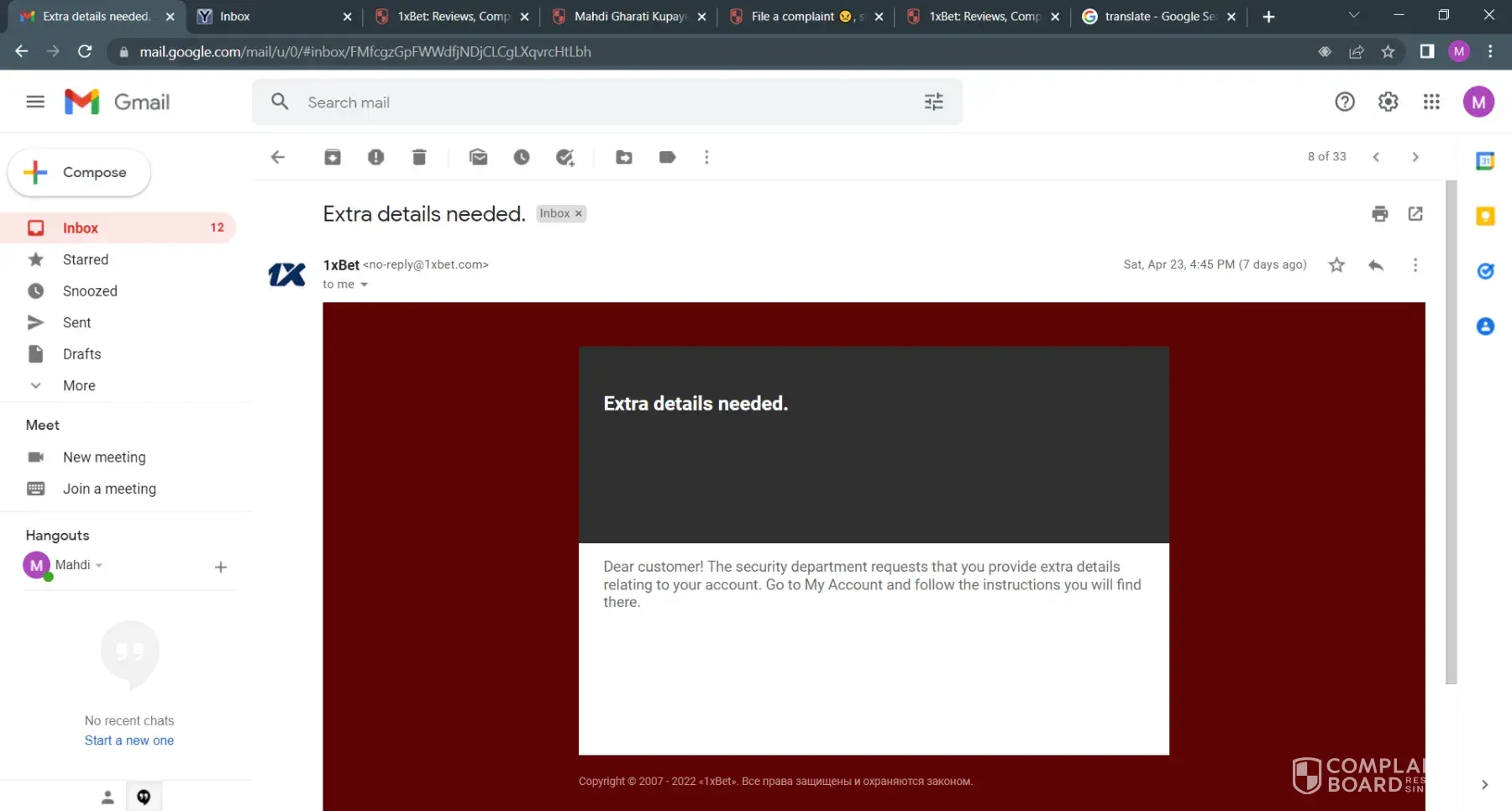 1xBet Complain about the money i withdraw on the 7 of april 2022