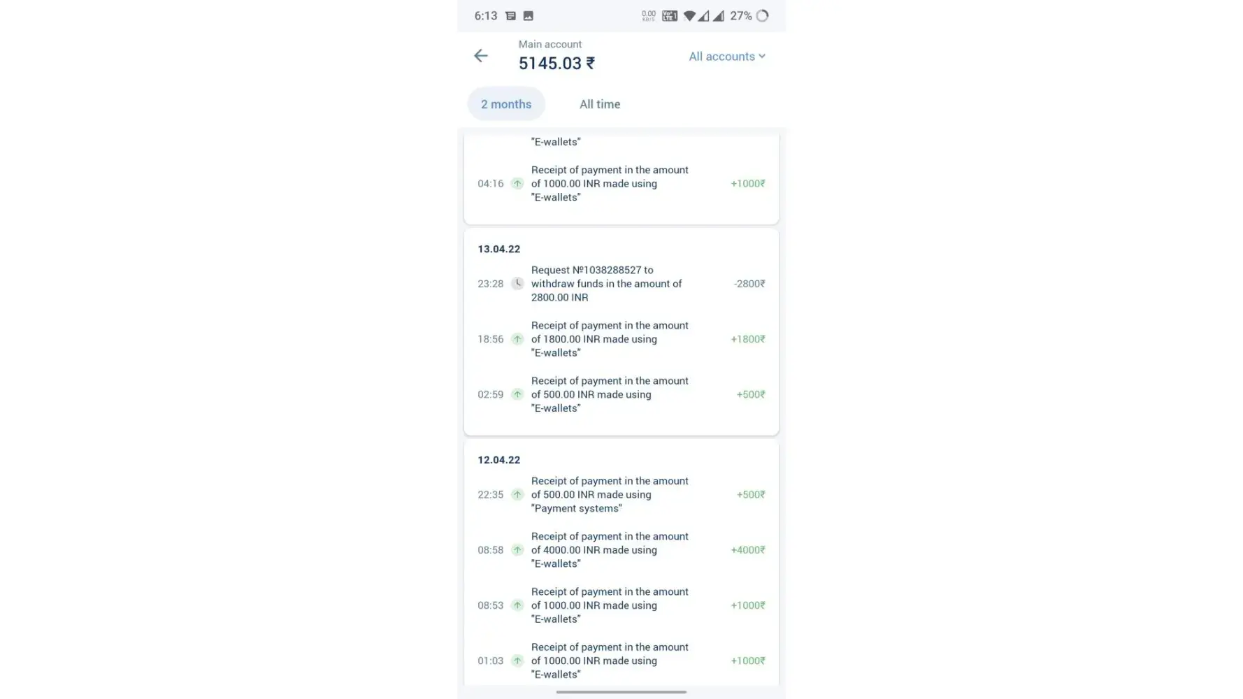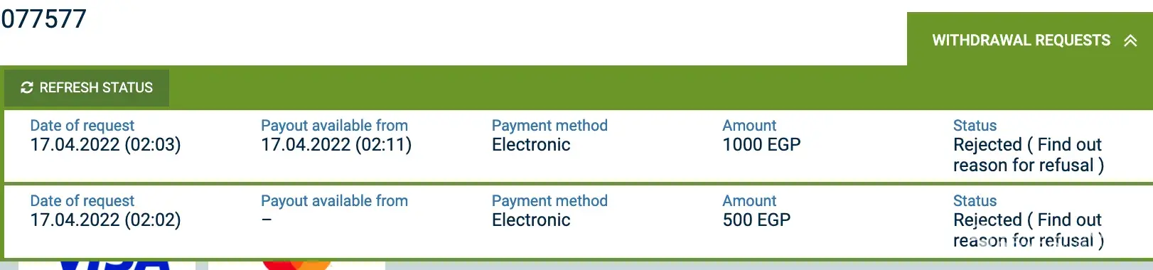 after it after 72 hours asked me to send my deposit transactions by my e-wallet.