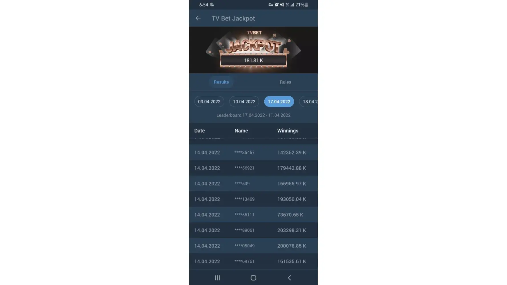 In jackpot announcement my last 5 number of id is show winner.