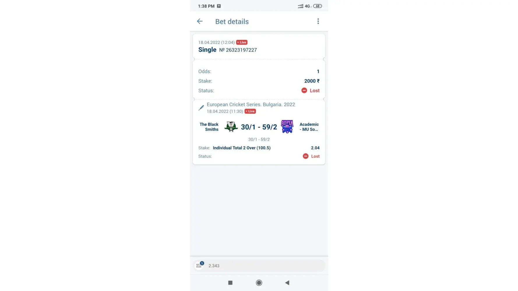 Previous I placed 2 bets which were settled as lost even if won those i consulted customer care they told to mail i did mailed but no reply or ntg.below are bet slip ID's and my account details and also attached screenshot of the results and the cricbuzz results please do verify and settle my money back