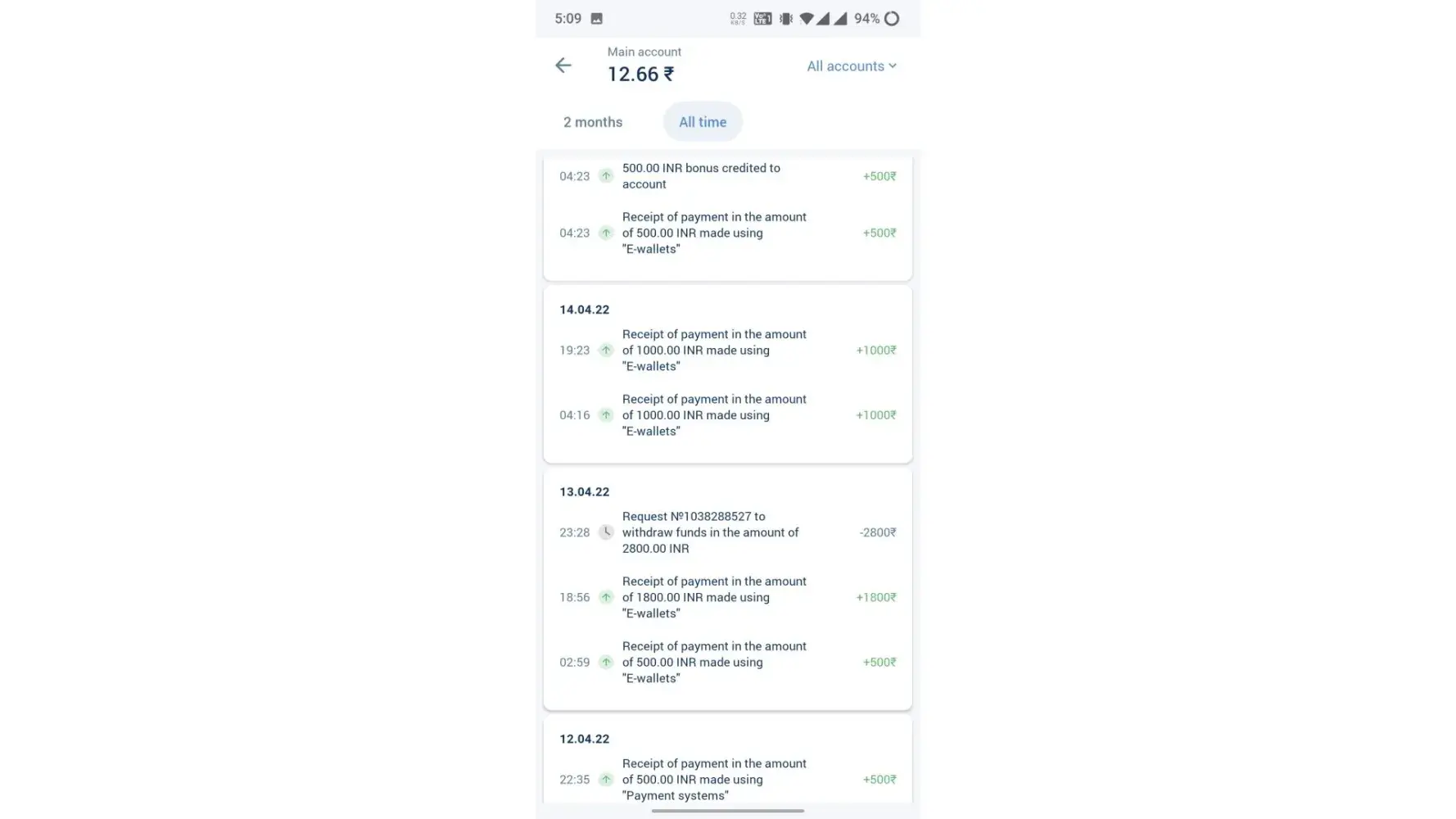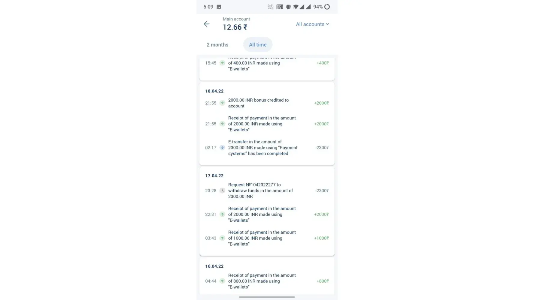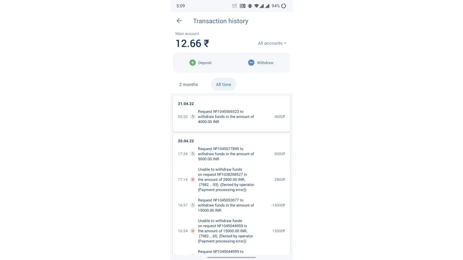 All option open hai for deposit, lekin withdrawal nahi kar sakte. 7th APR ka withdrawal hai 10 hai no response.
